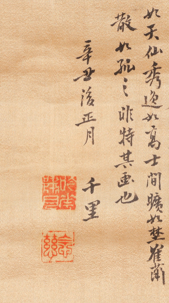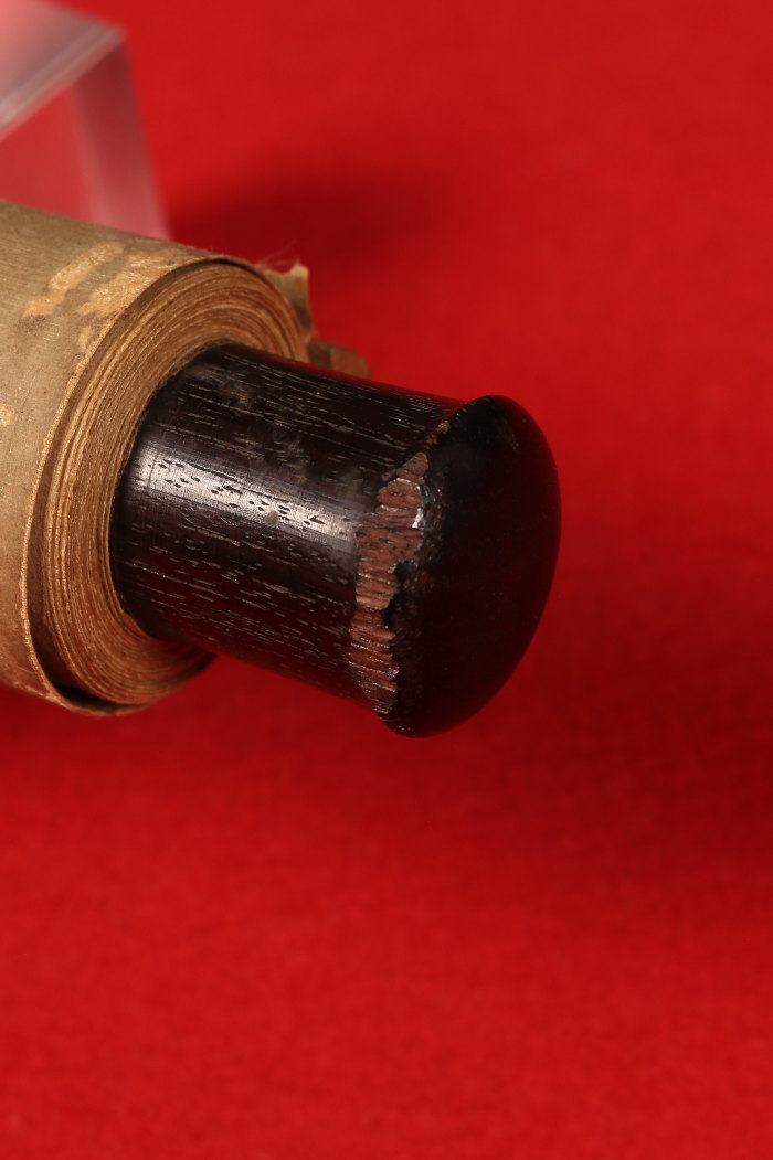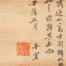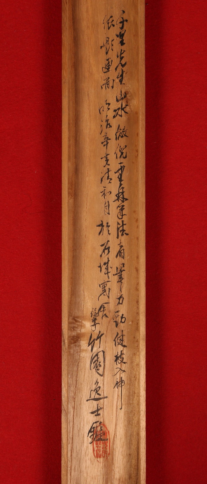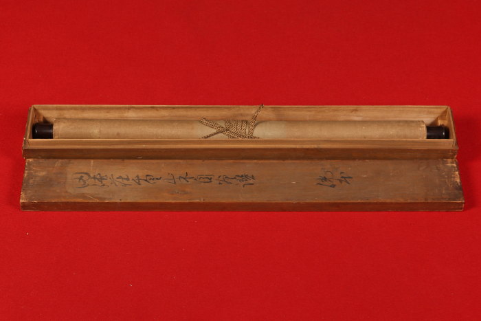 本紙、表具に少しシミ、折れ、軸先にイタミがあります。 - 付属品極箱(竹園)