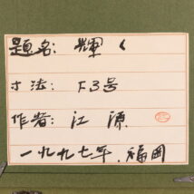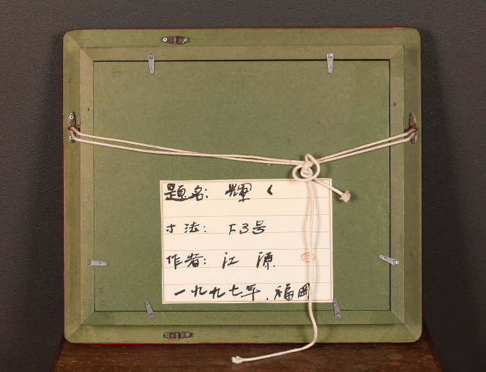 江源の作品は画面から溢れ出る強烈な色彩とマチエールで見る者を太古のロマンへと誘い、秦の始皇帝兵馬俑の歴史と文化が培った文明の美、日本の金箔の美、イタリアのルネッサンスの美と洋の東西・時代・技法を超えたその画風は、 みずみずしい生命力と力強いエネルギーを放ち永遠に輝き続ける。2006年、首都北京の中華世紀壇世界藝術館で江源展「輝きの兵馬俑の世界」を開催。 2008年には北京オリンピックの開催を記念した江源展「2200年の対話」を、世界文化遺産跽坐像1体、世界文化遺産鎧甲武士俑2体との コラボレーションで秦の始皇帝兵馬俑博物館にて8月から2009年4月まで9ヶ月間に亘って開催し100万人に及ぶ来場者を迎える。2009年、日本橋三越本店で秦の始皇帝兵馬俑博物館出展作品を含めた個展を開催し多くの方々の共感と賞賛を頂く。