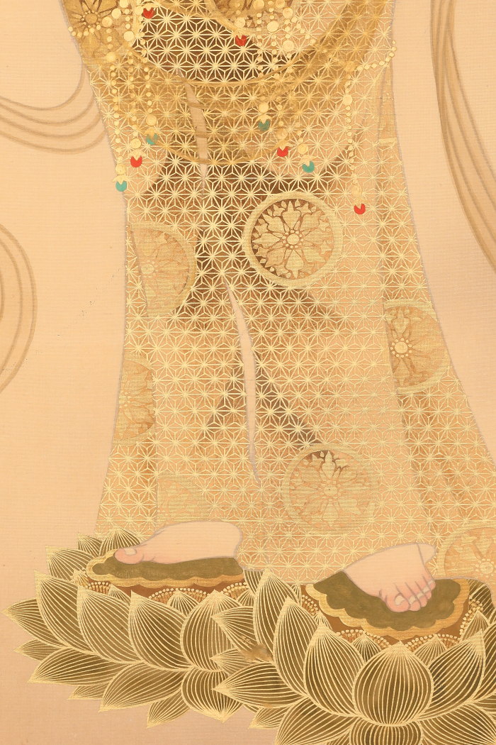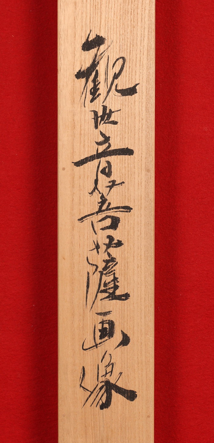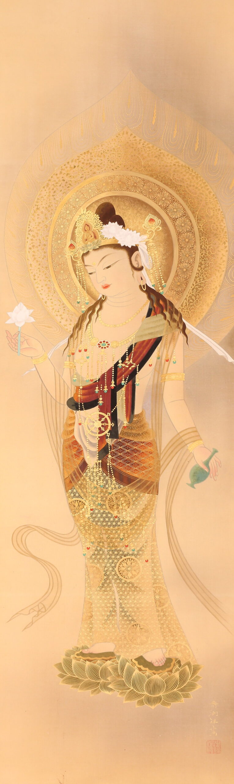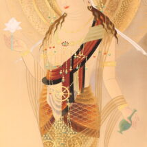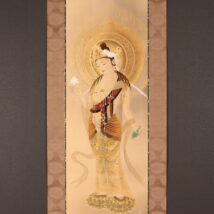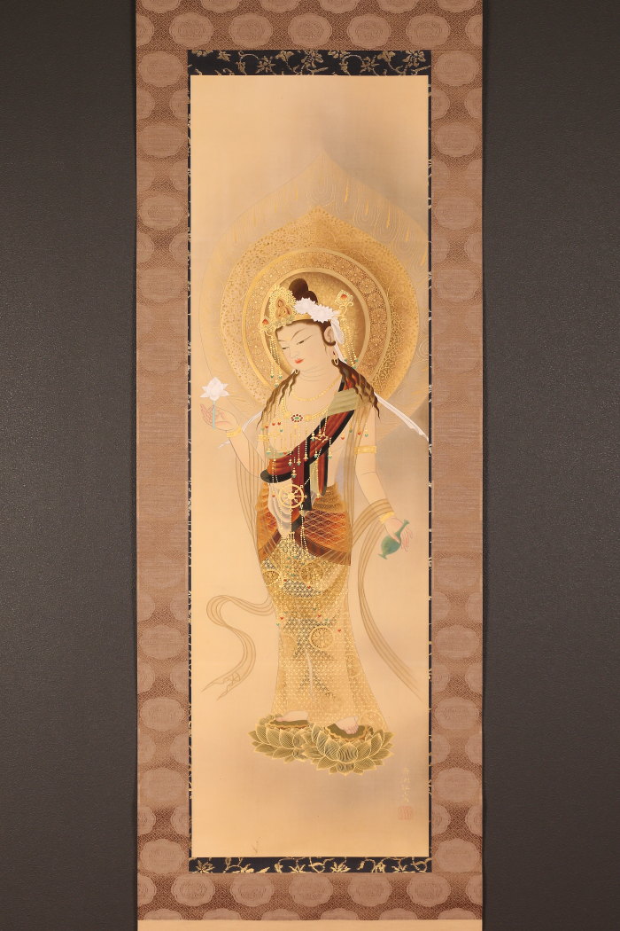 掛軸<萱嶋青潮>仏画 観音図 金泥署名(HP1544)