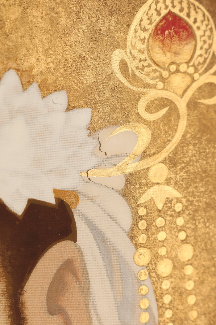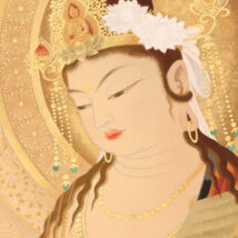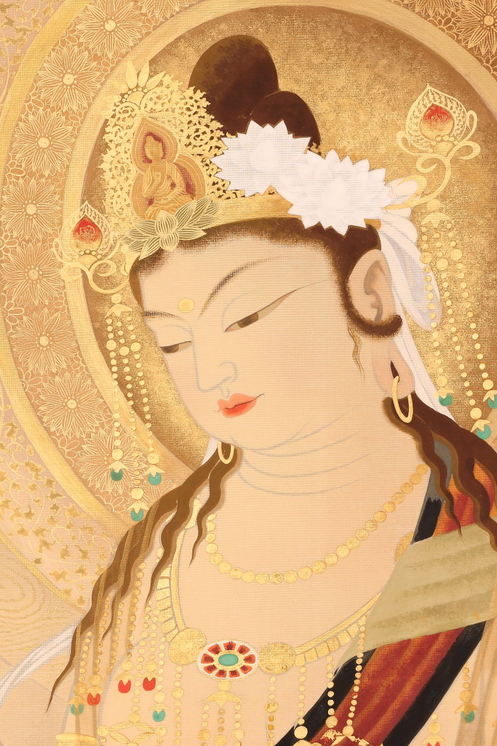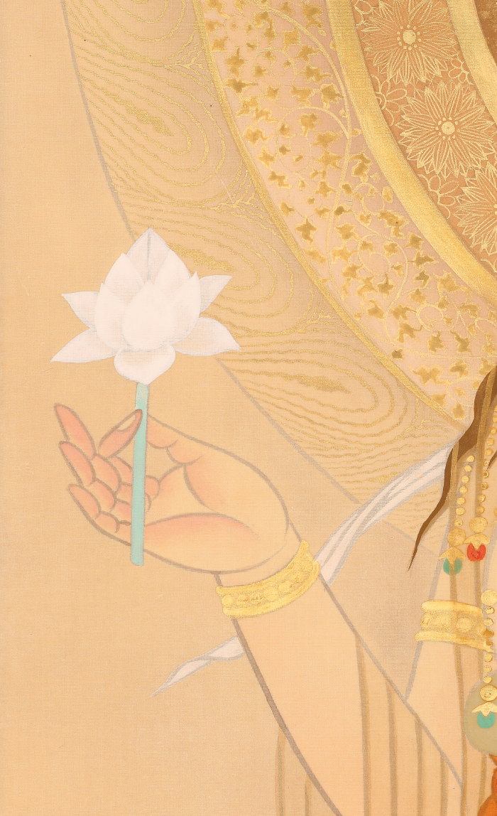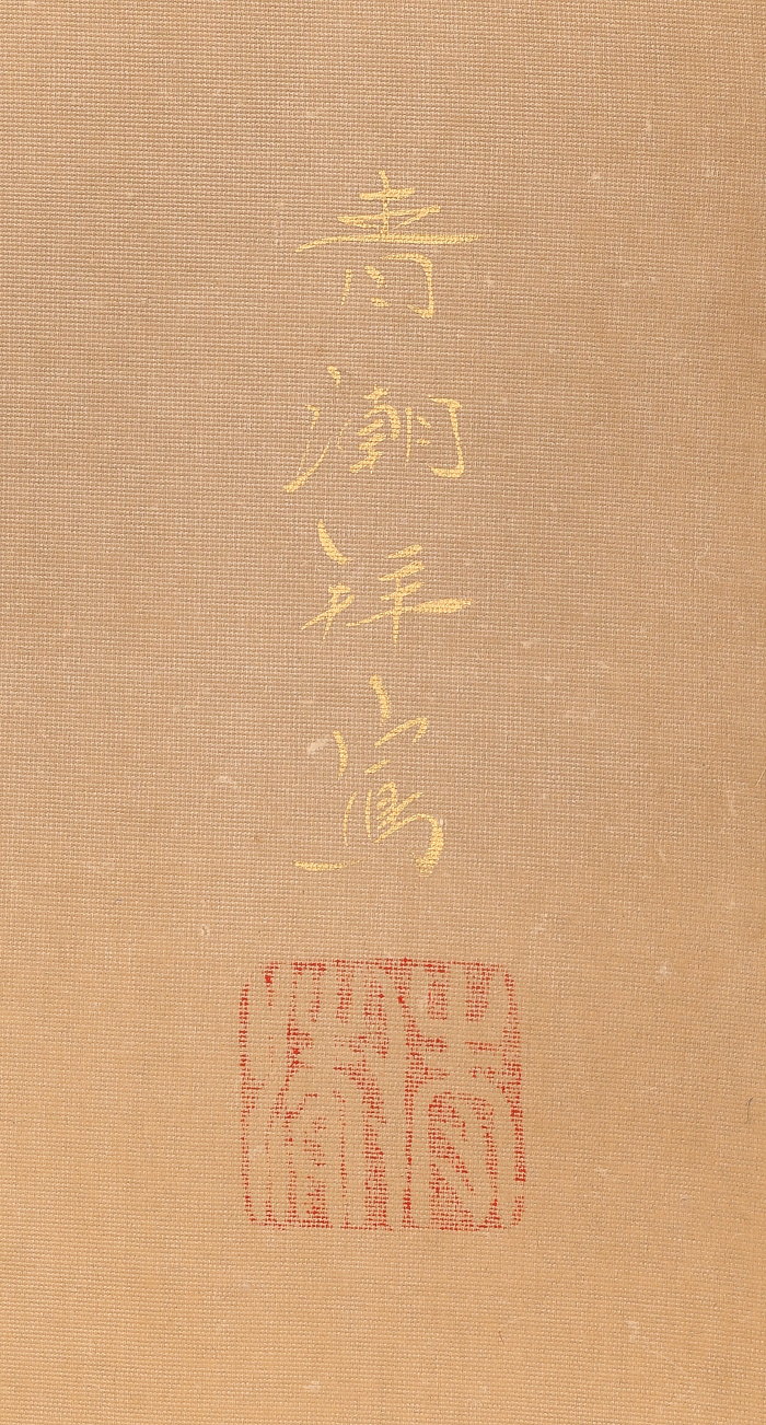 掛軸<萱嶋青潮>仏画 観音図 金泥署名(HP1544)