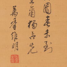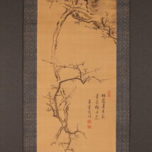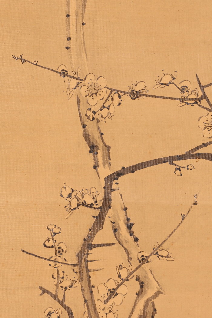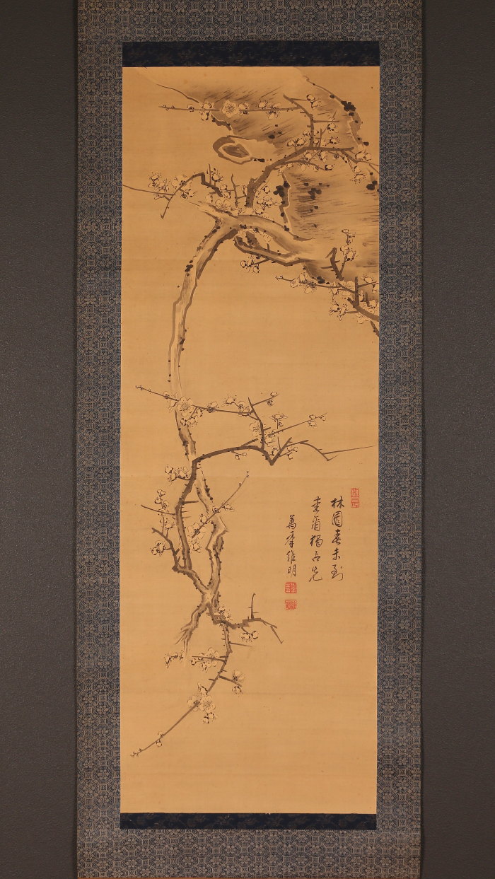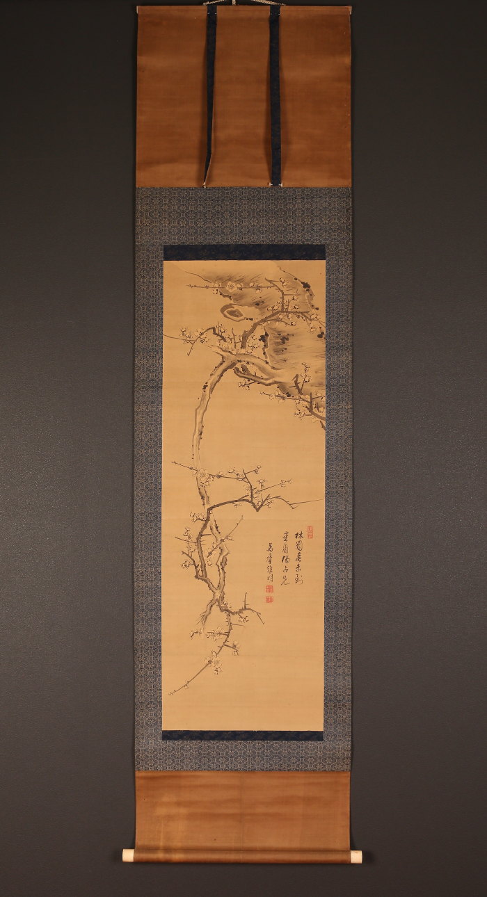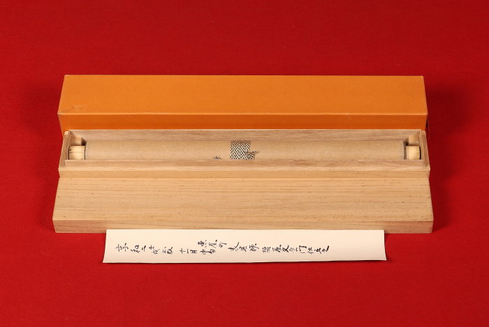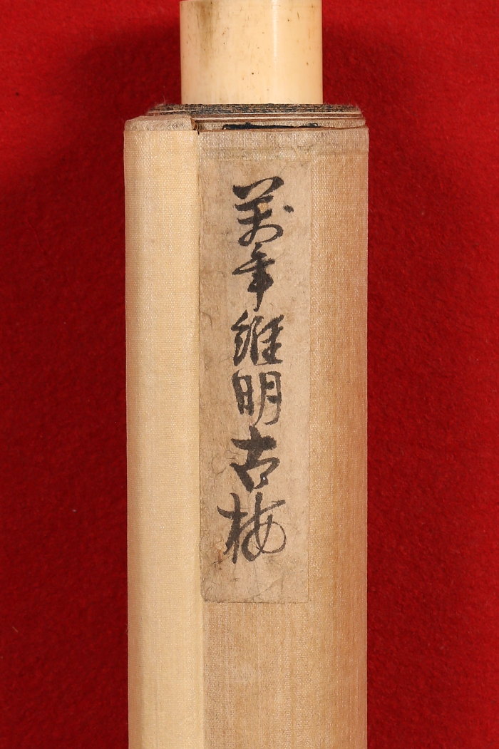 シミ(表具下部にシミダレあり)、折れ、表具に虫食いがあります。 - 付属品タトウ箱あり
