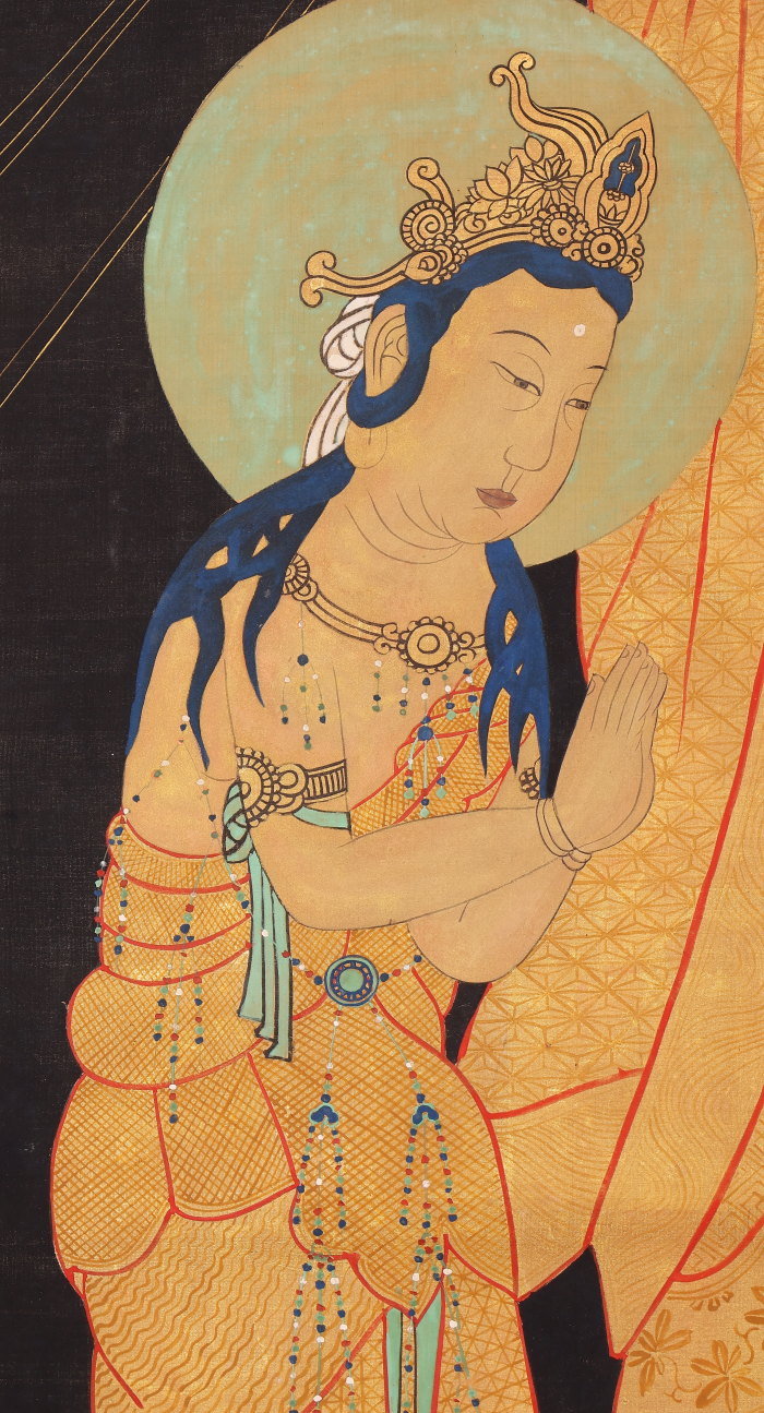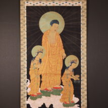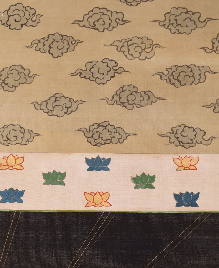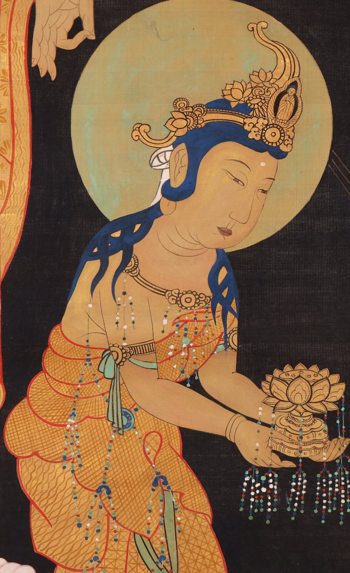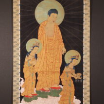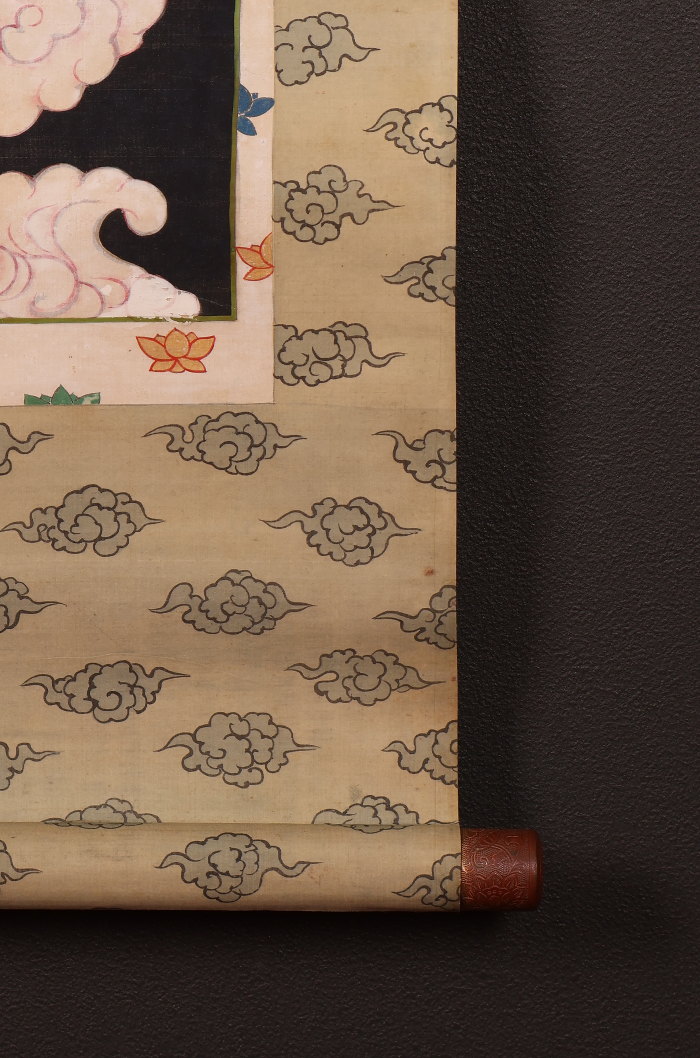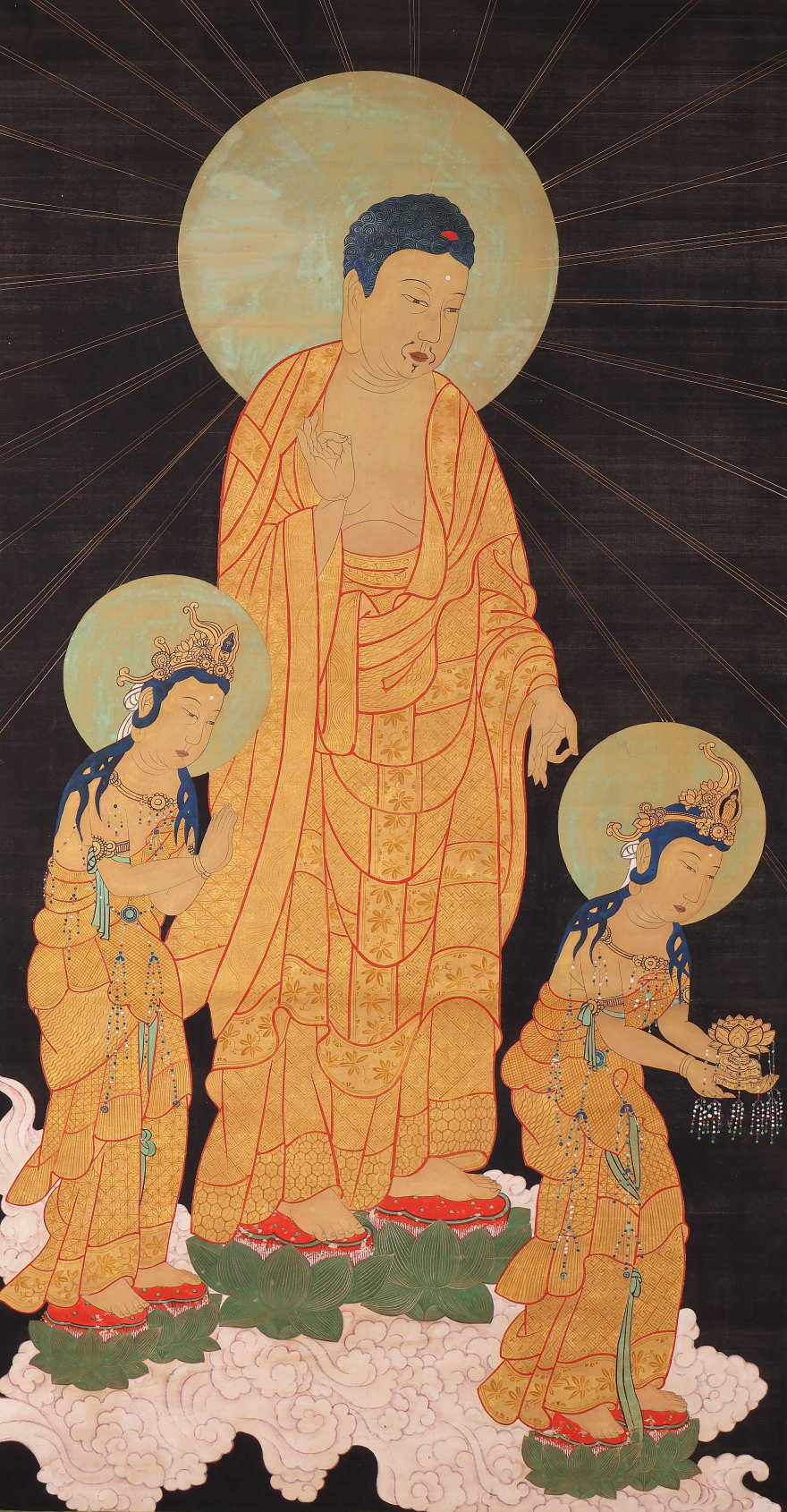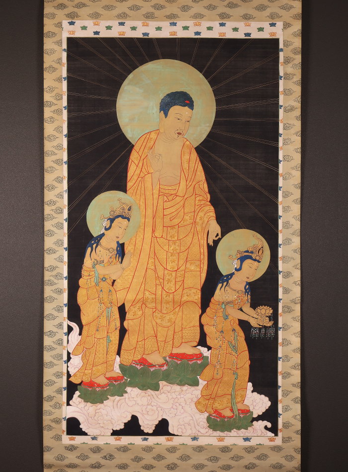 掛軸<伝:生源寺業蕃>大幅 仏画 阿弥陀三尊来迎図 文政2年 裏書有 什物 描き表具 神仏習合 中国(HP1550)
