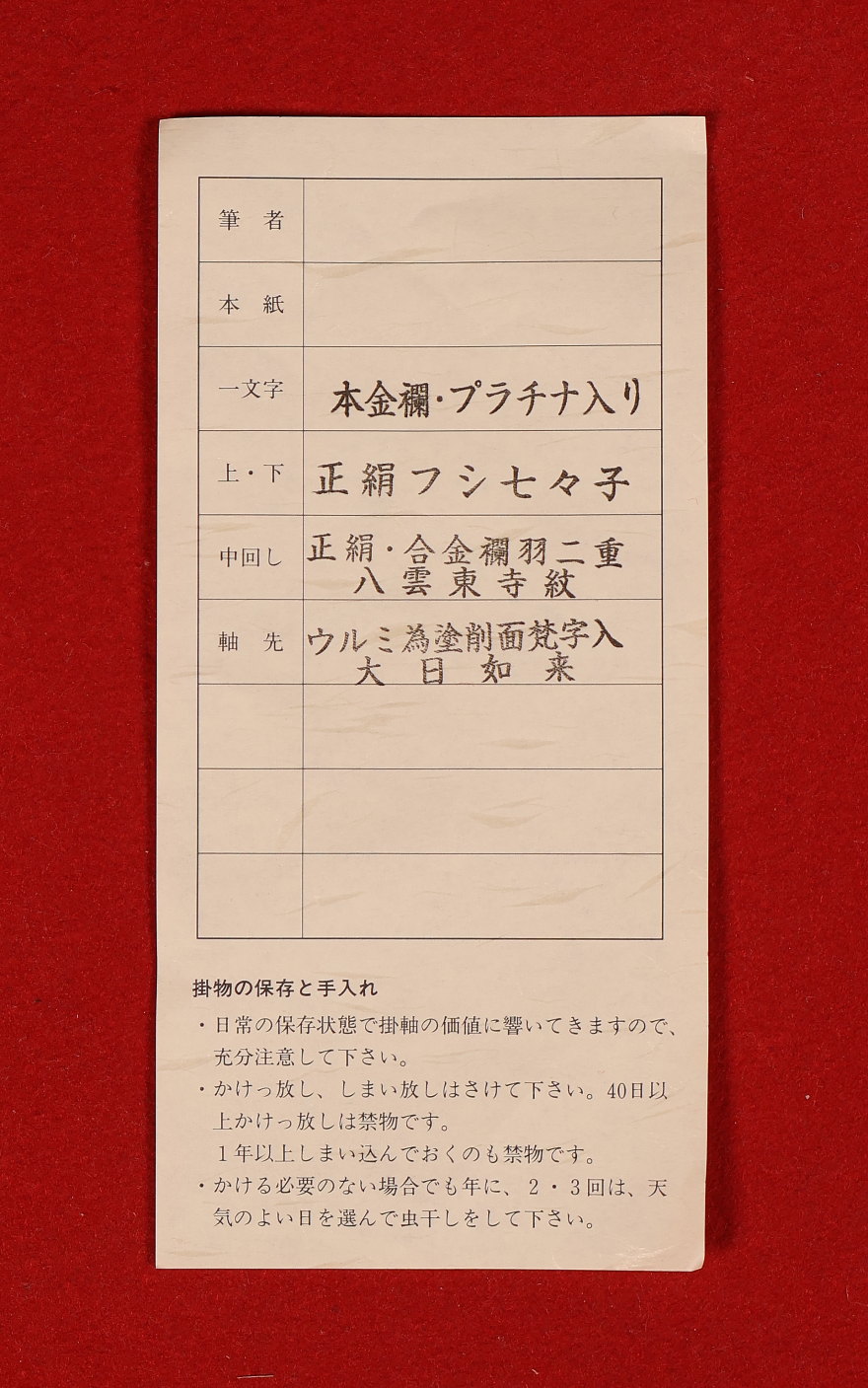 本紙に折れがあります。 - 付属品箱書き(鷲尾隆輝)