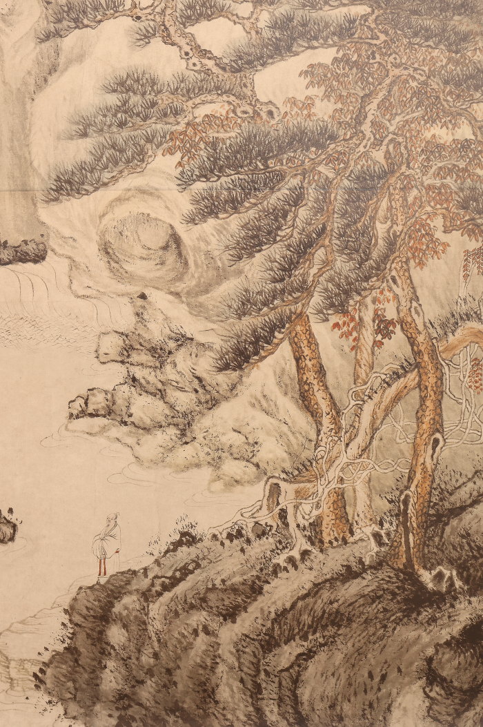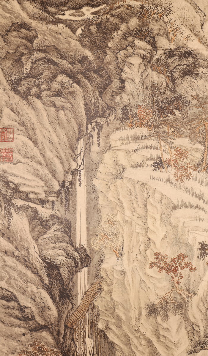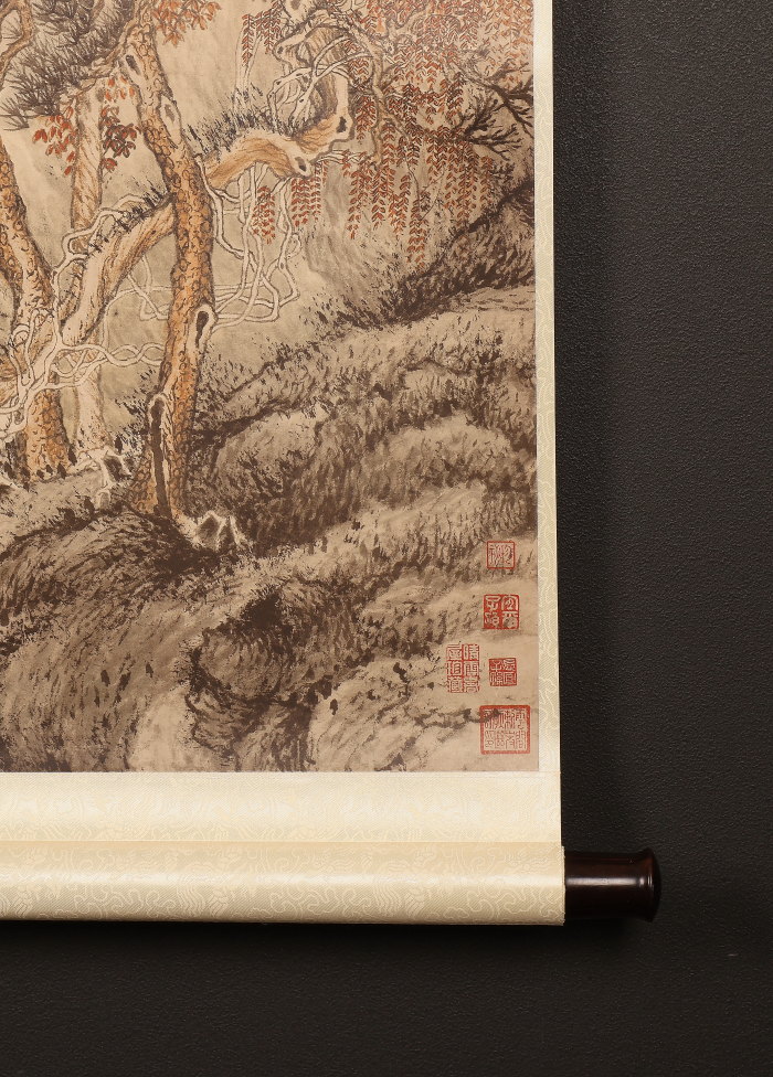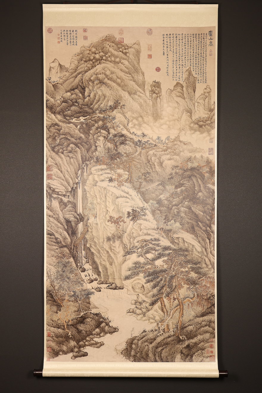 掛軸<沈周>超大幅 盧山高図 二玄社 解説釈文付属 工芸印刷(HP1556)