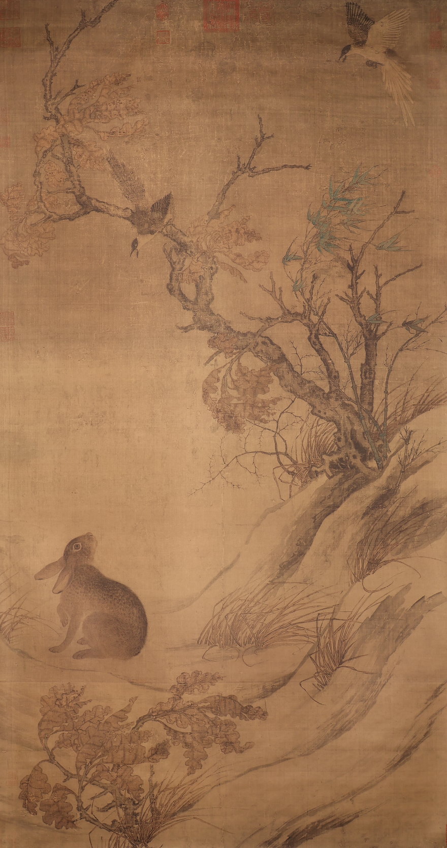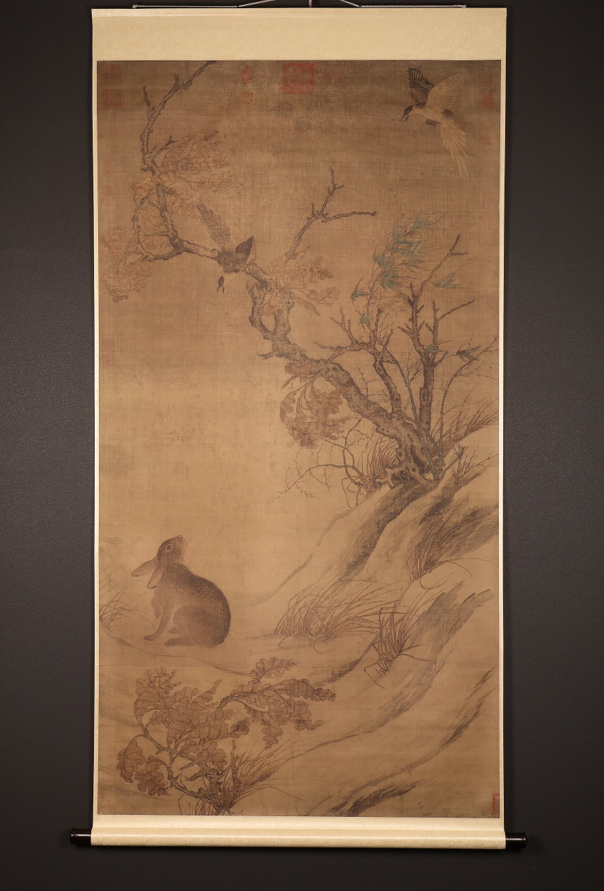掛軸<崔白>超大幅 雙喜図 二玄社 解説釈文付属 工芸印刷(HP1557)