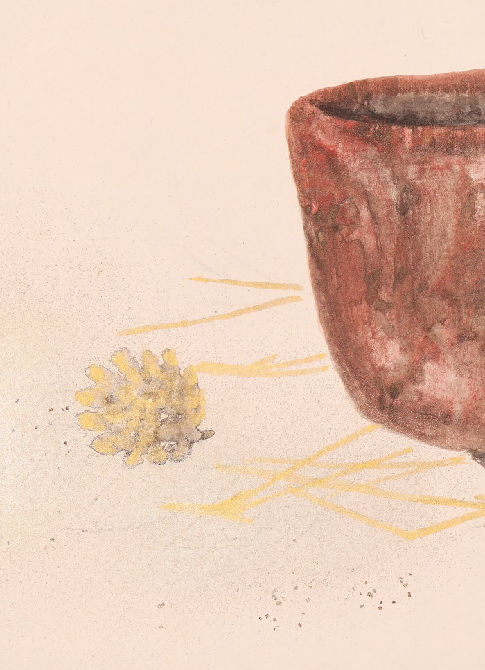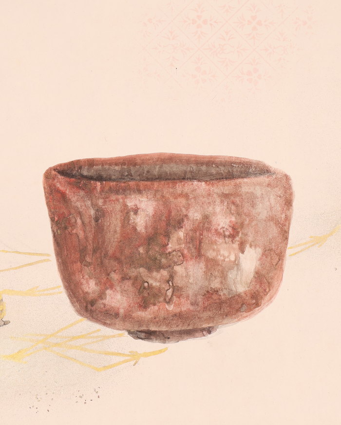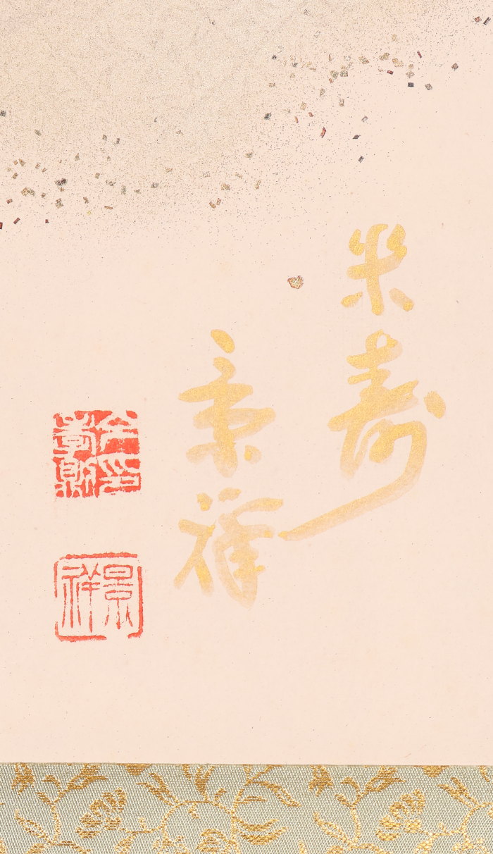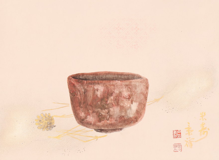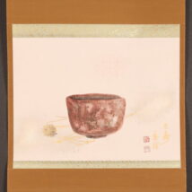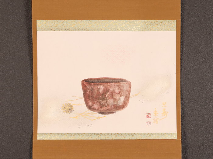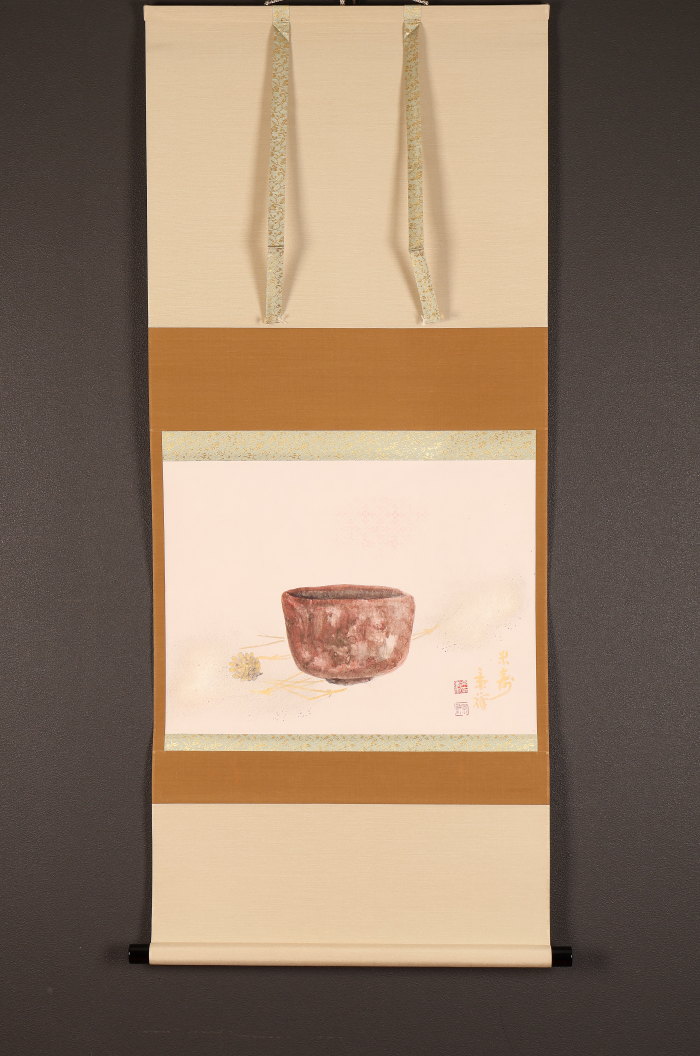 掛軸<今尾景祥>茶碗図「赤楽」金泥署名(HP1561)