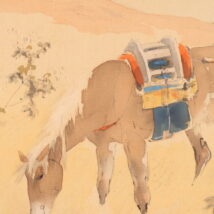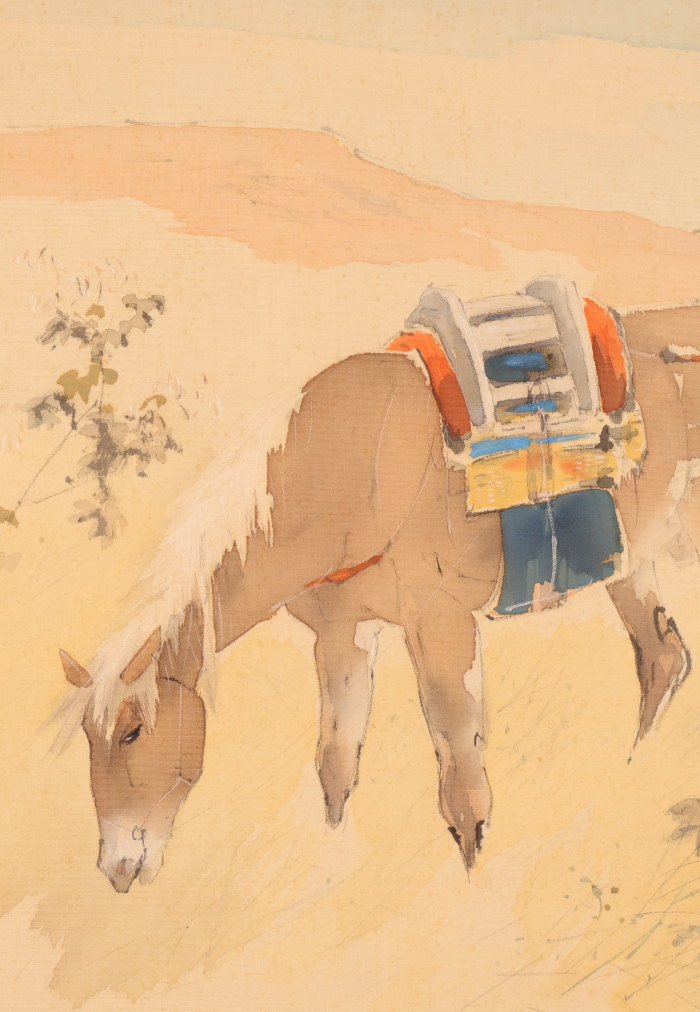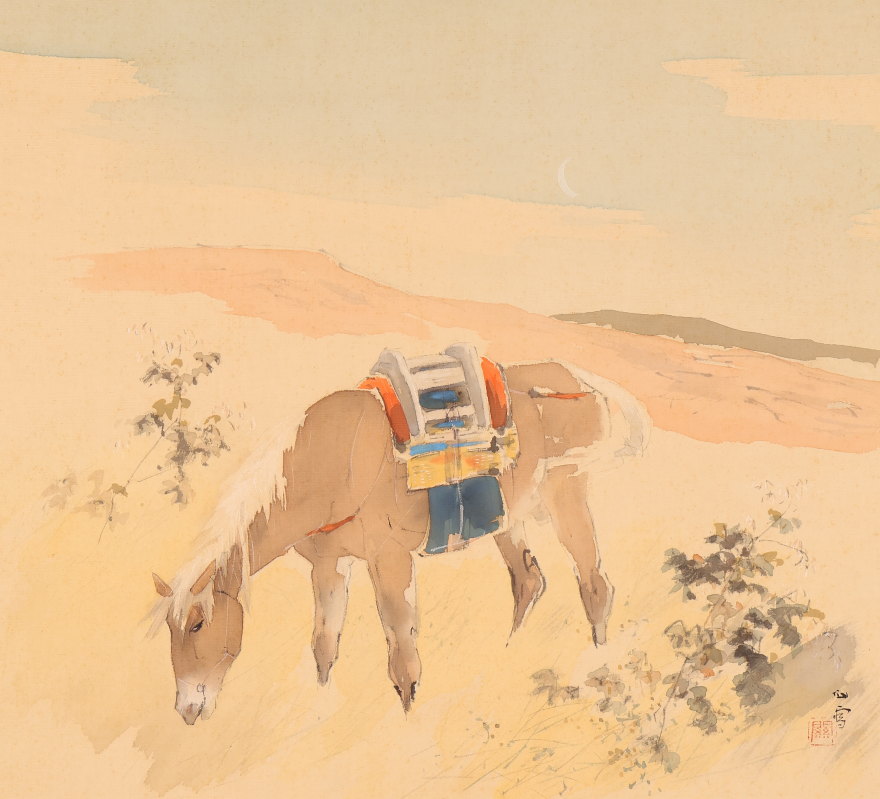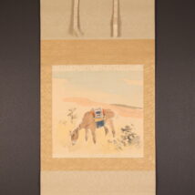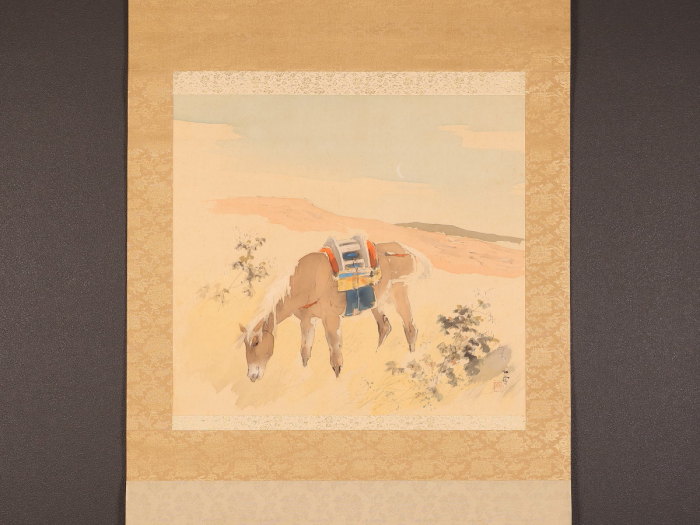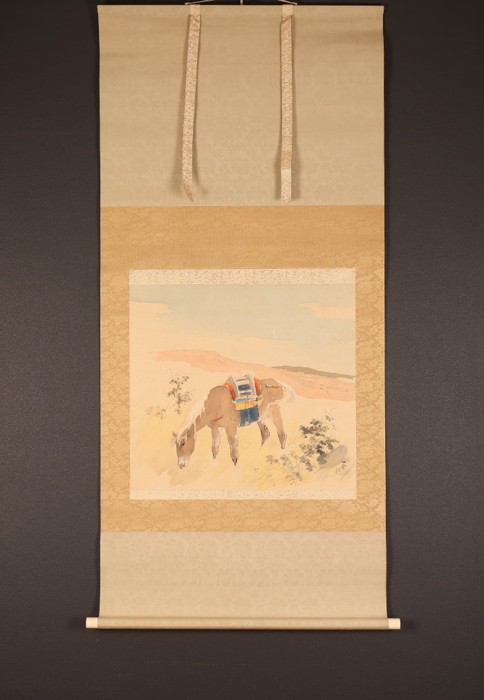 掛軸<橋本関雪>馬図「高原の朝」(HP1564)