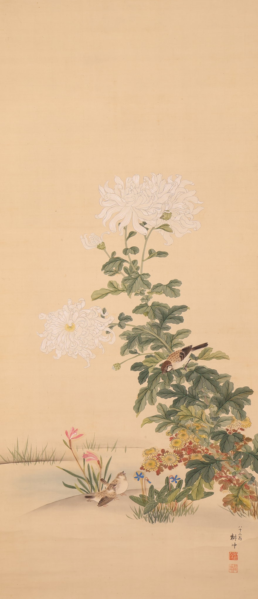 掛軸<上田耕冲>花鳥図(HP1568)
