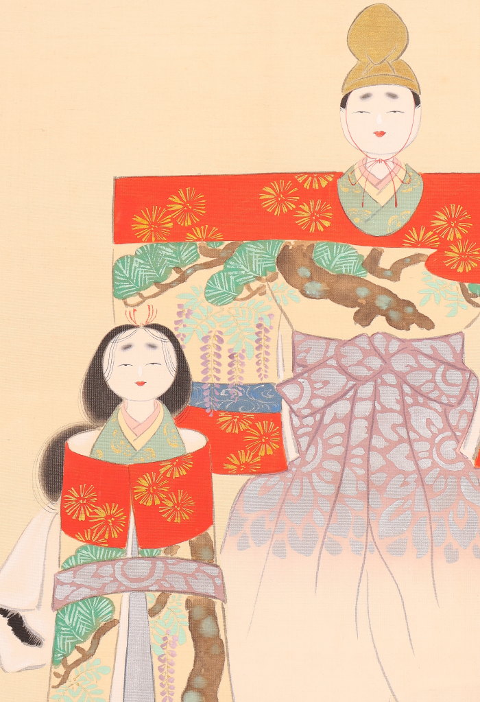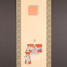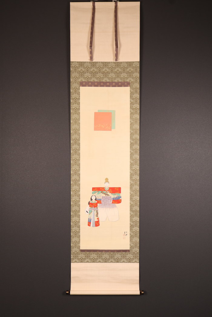掛軸<岡本大更>立雛図 桃の節句 雛祭 三月掛(HP1570)