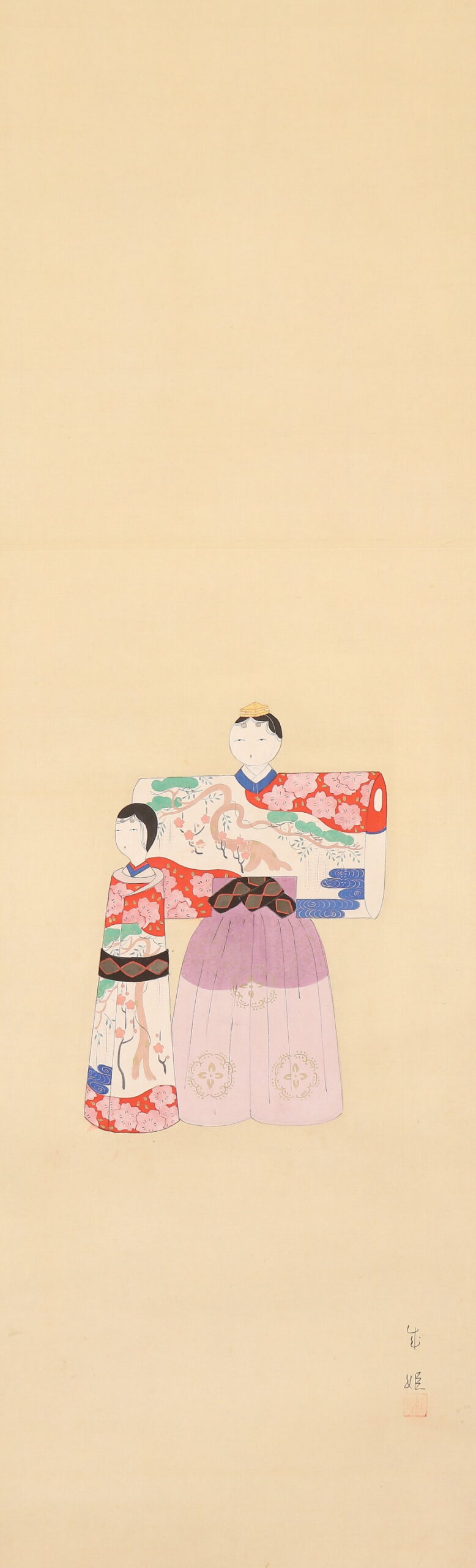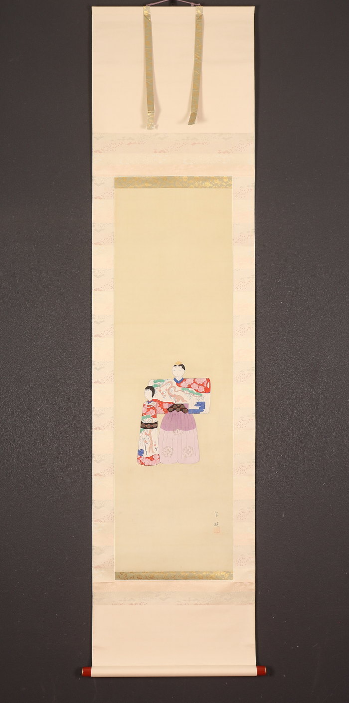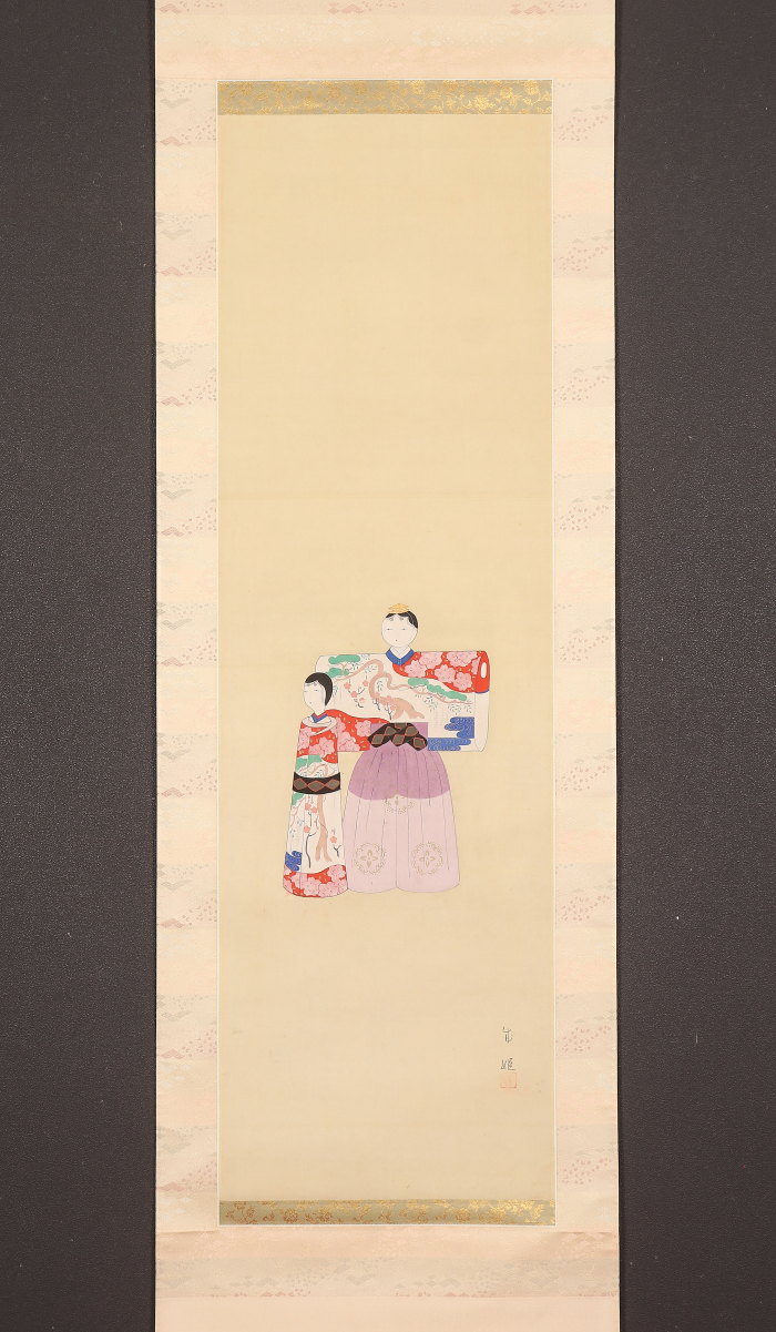 掛軸<岡島成姫>立雛図 島成園門下 浪華の女流画家 大阪画(HP1575)