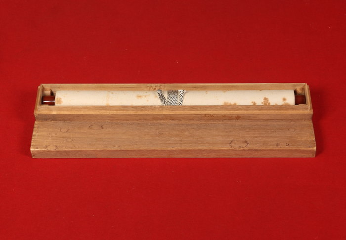 シミ、本紙に少し折れ、軸先にイタミがあります。 - 付属品箱有り