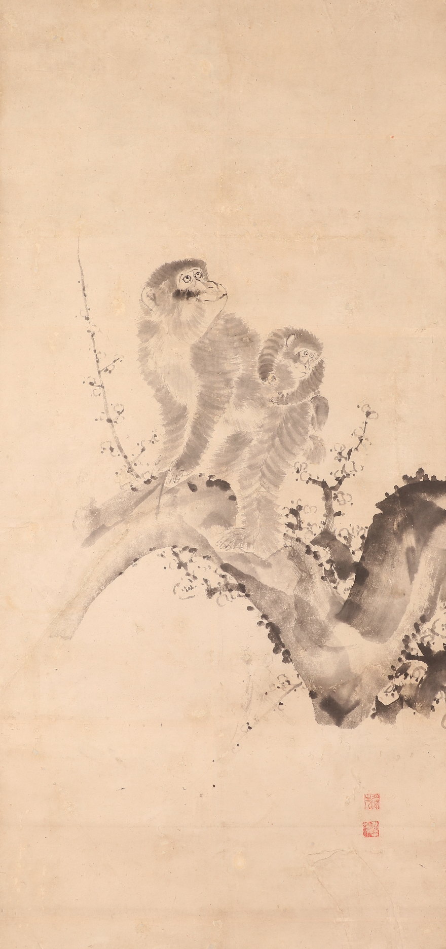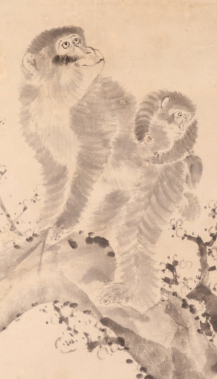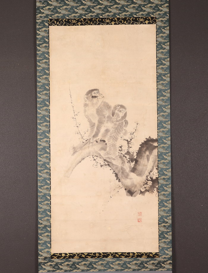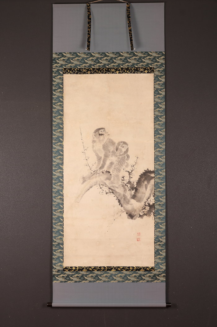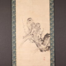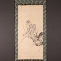 掛軸<山本雲渓>梅に双猿図(HP1580)