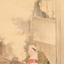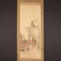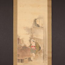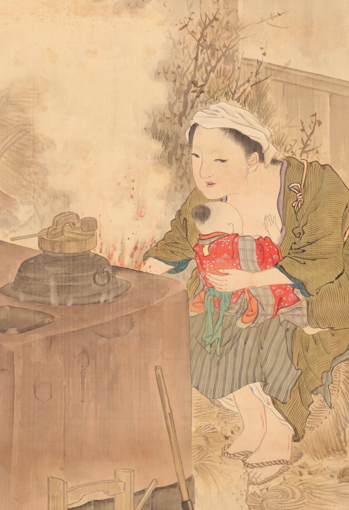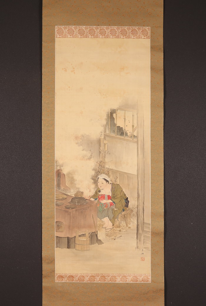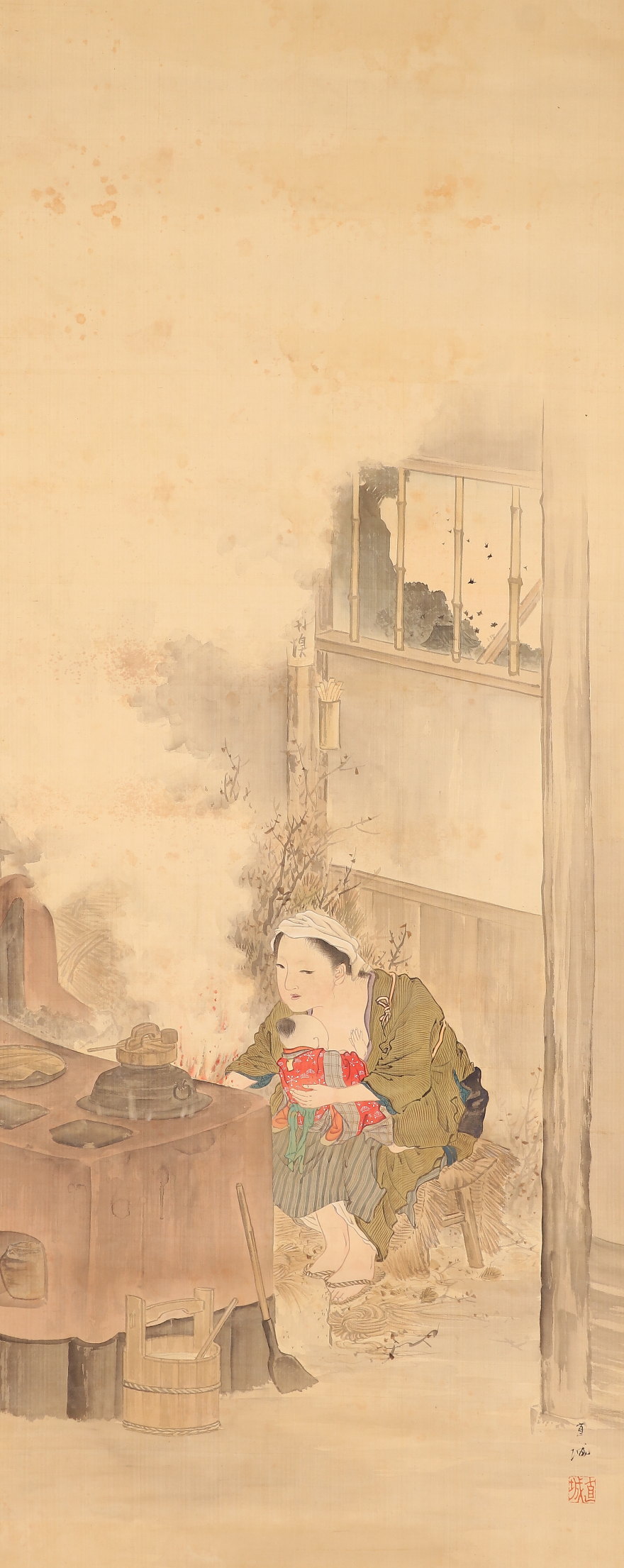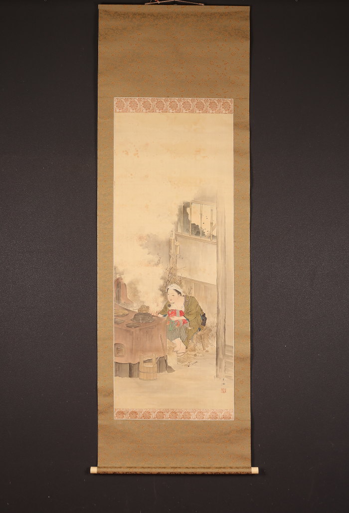 掛軸<深田直城>釜戸母子図 美人画(HP1582)
