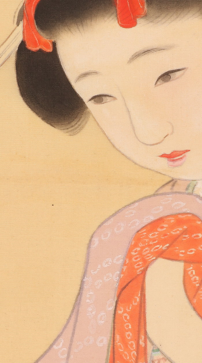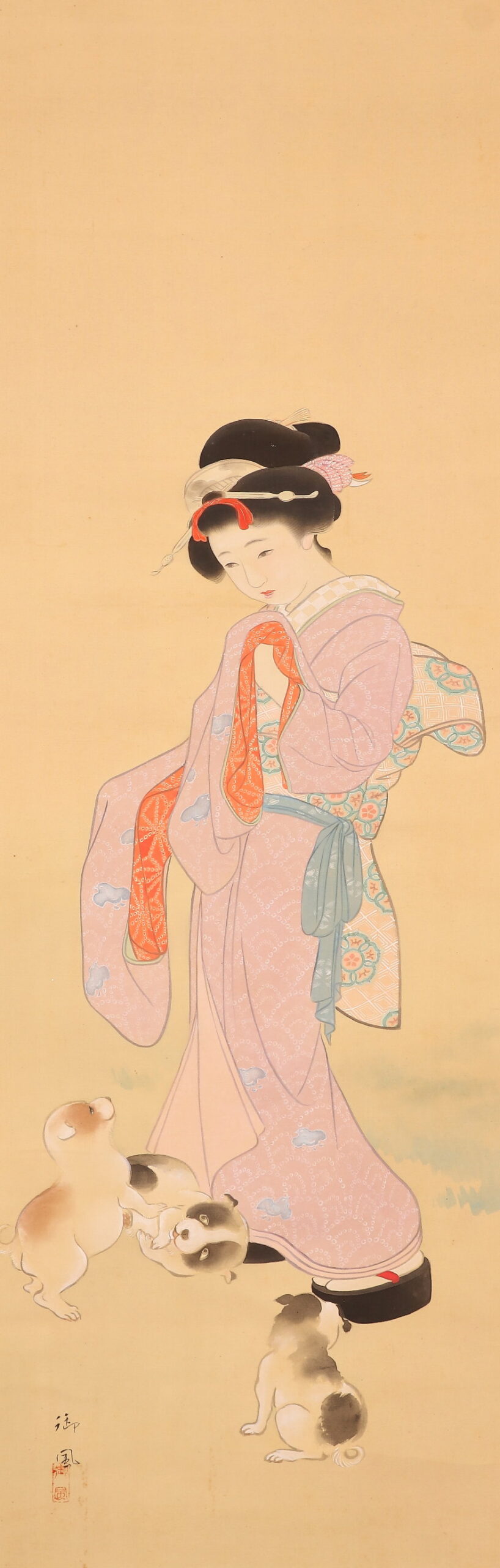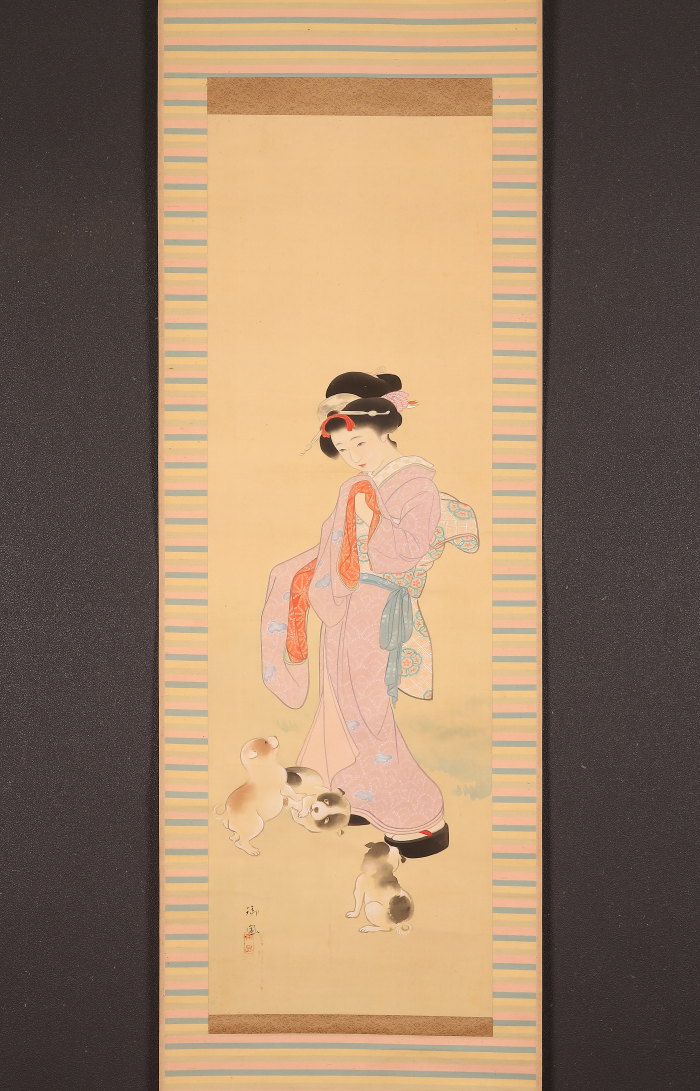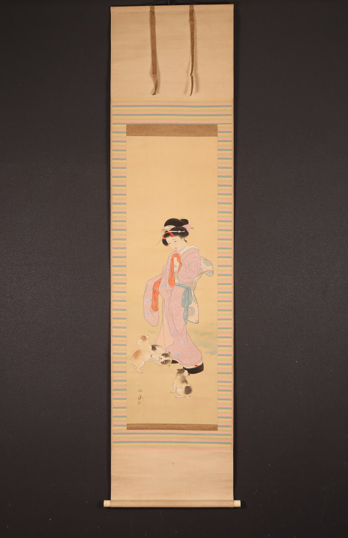 【売約済】掛軸<島御風>仔犬美人図(HP1583)