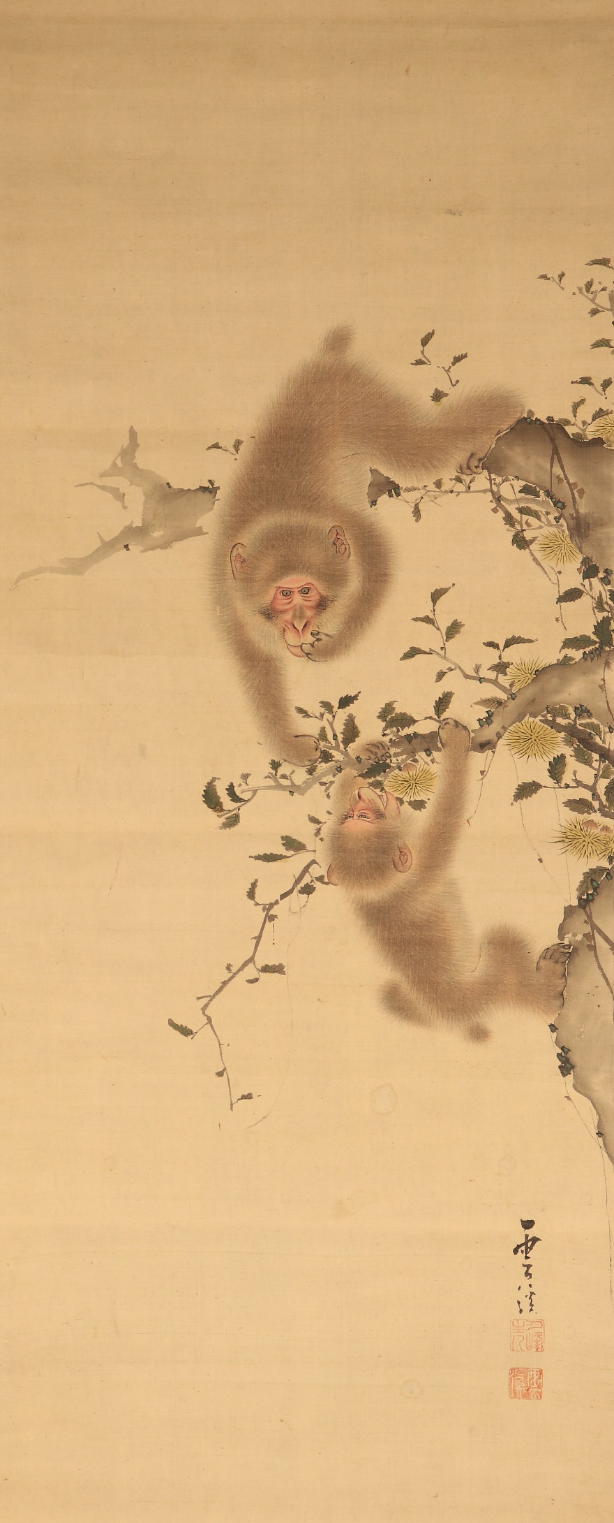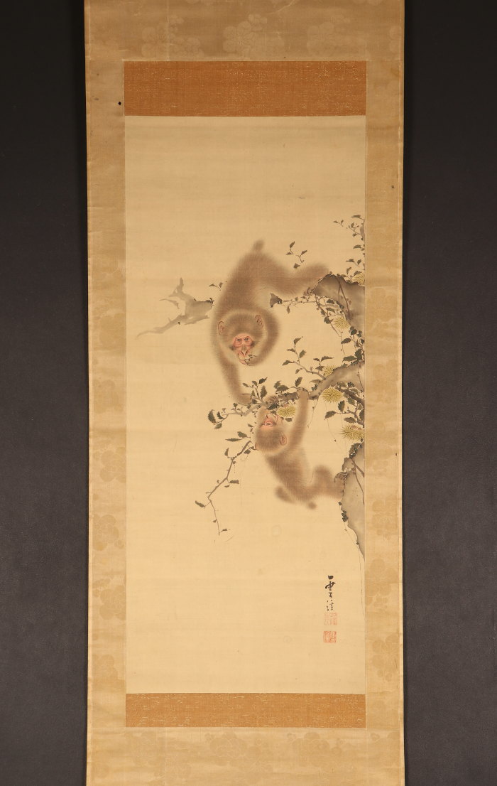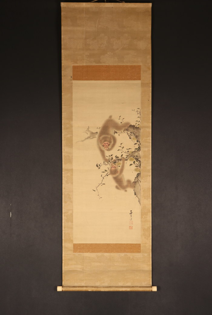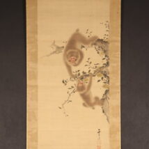 掛軸<山本雲渓>親子猿図(HP1587)