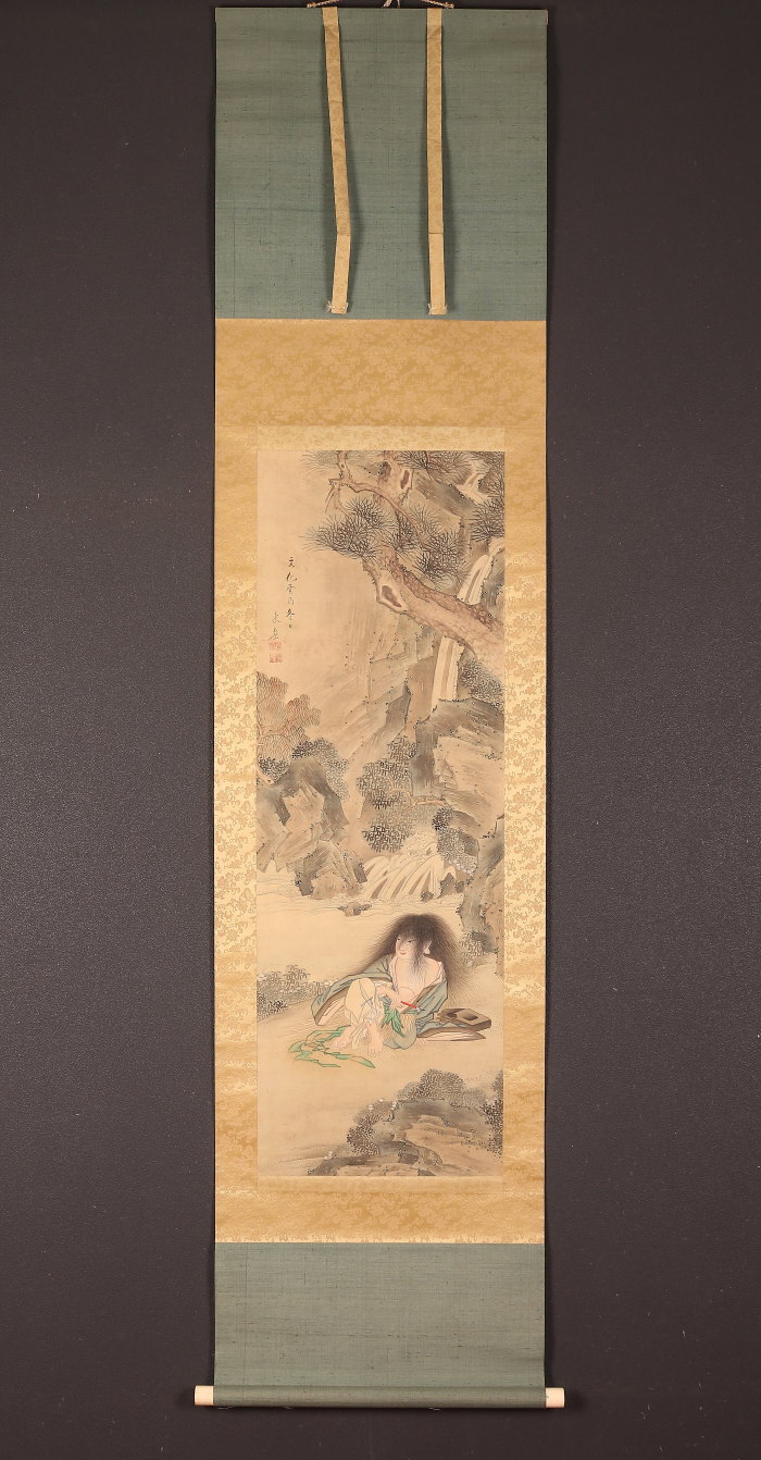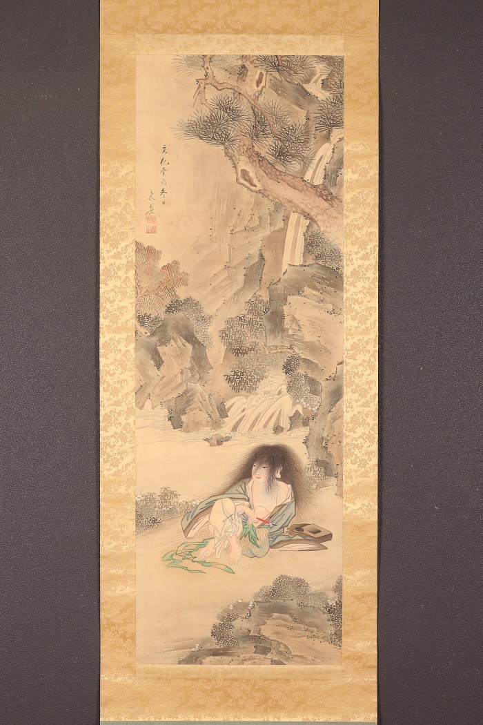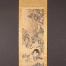 掛軸<福原東岳>希品 菊慈童図 福原五岳の子 大阪の人(HP1588)