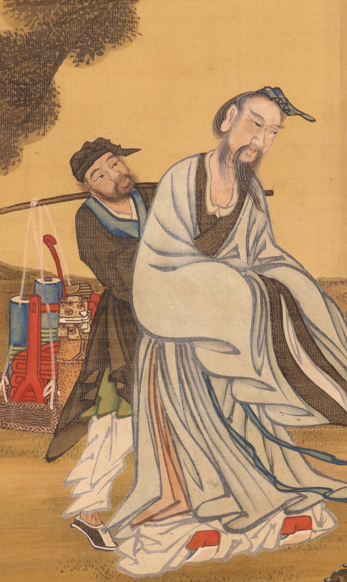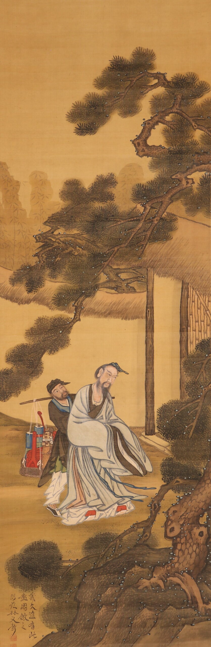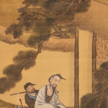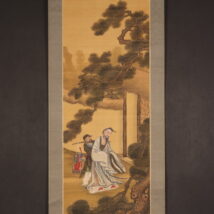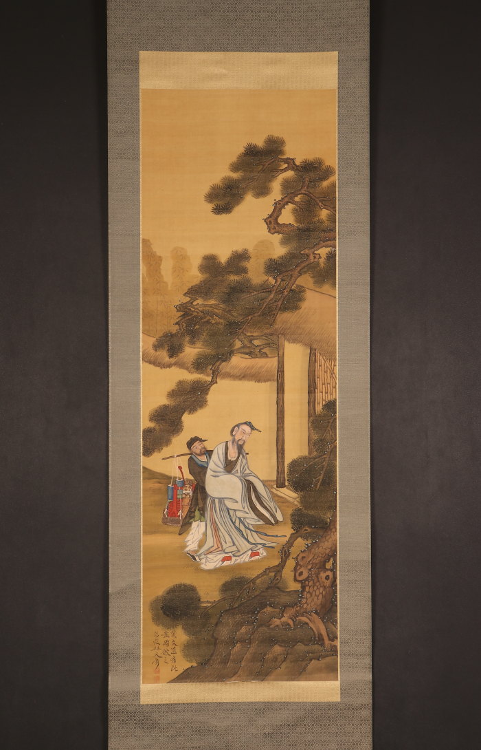 掛軸<林閬苑>極彩色人物図 倣:戴文進(HP1591)