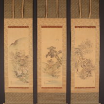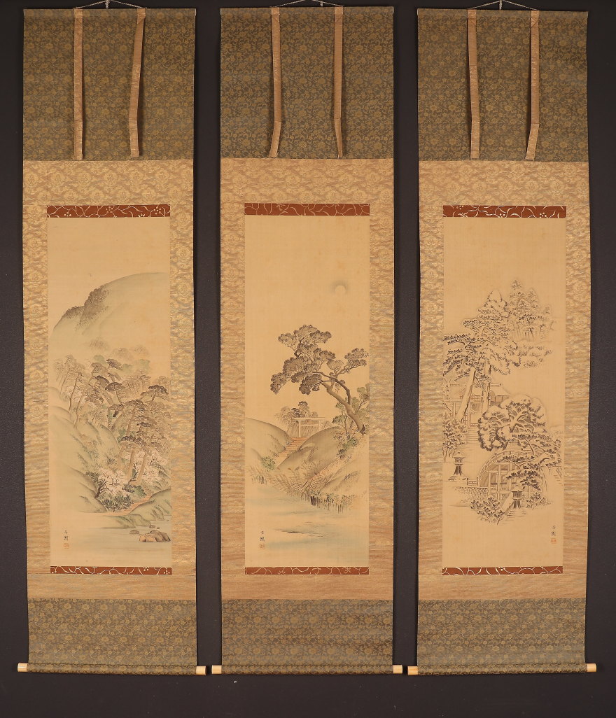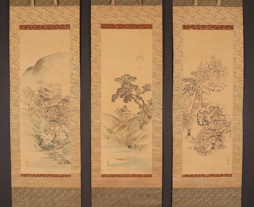 掛軸<西山芳園>三幅対 雪月花山水図 住吉大社 隅田川 嵐山(HP1592)