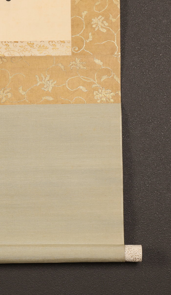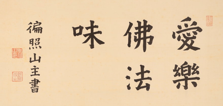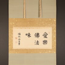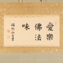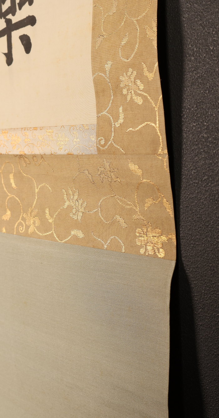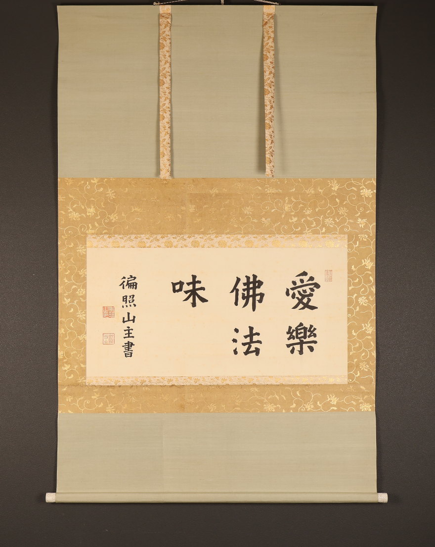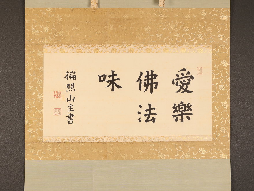 掛軸<木辺孝慈>超大幅 書「愛楽佛法味」清水六兵衛の軸先 竹屋町表具(HP1597)