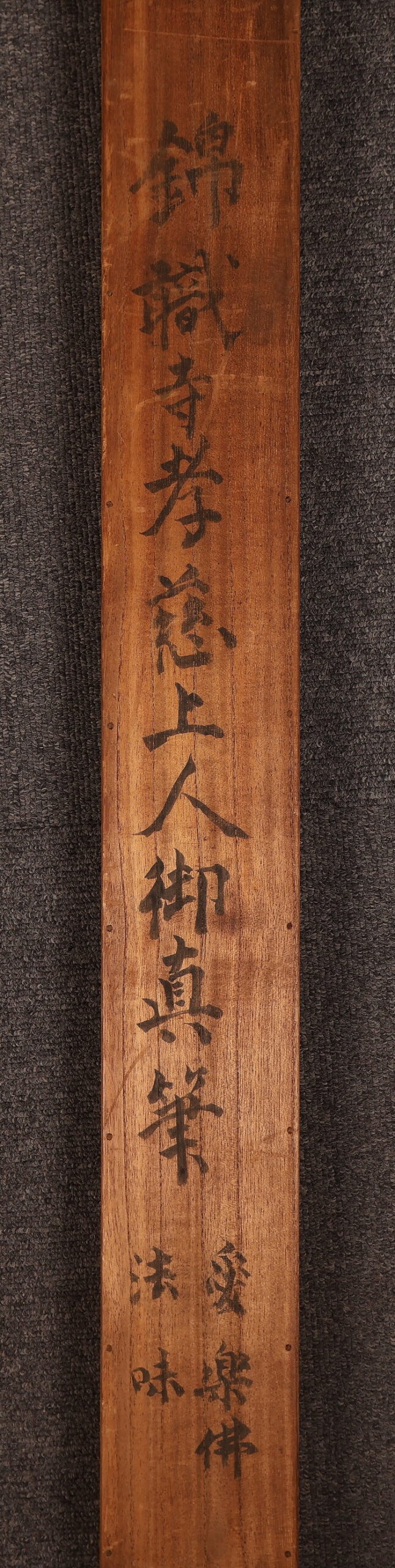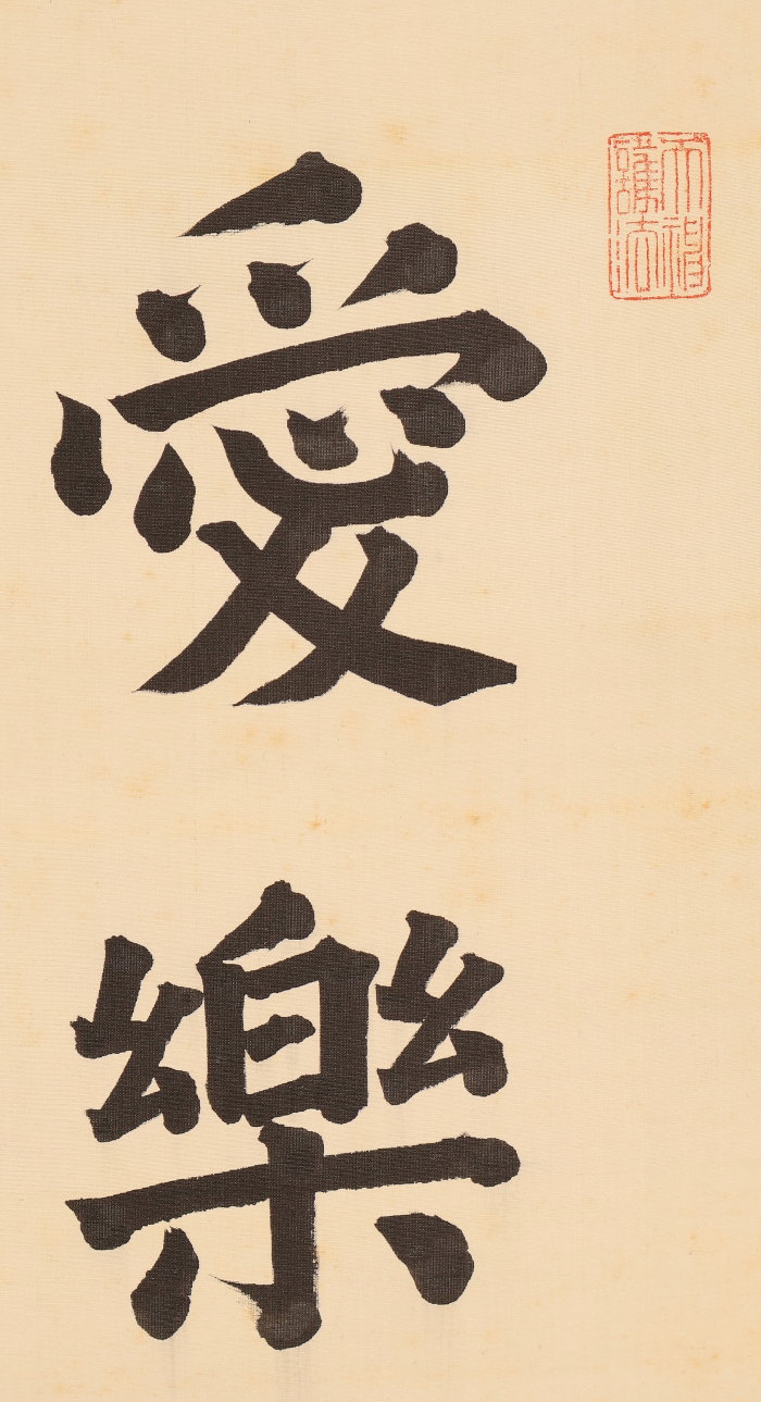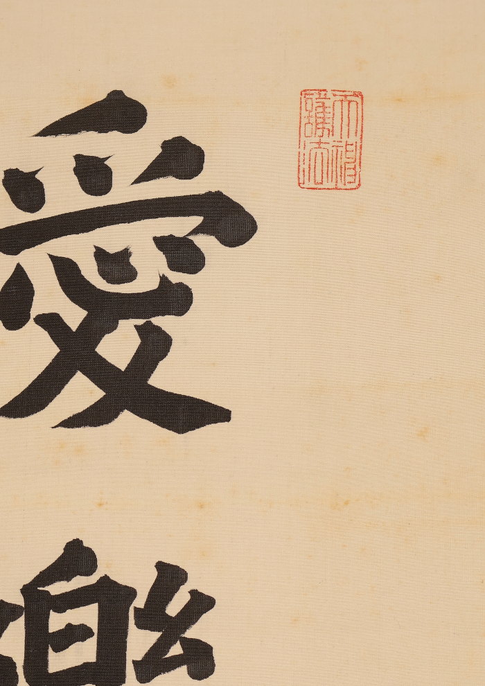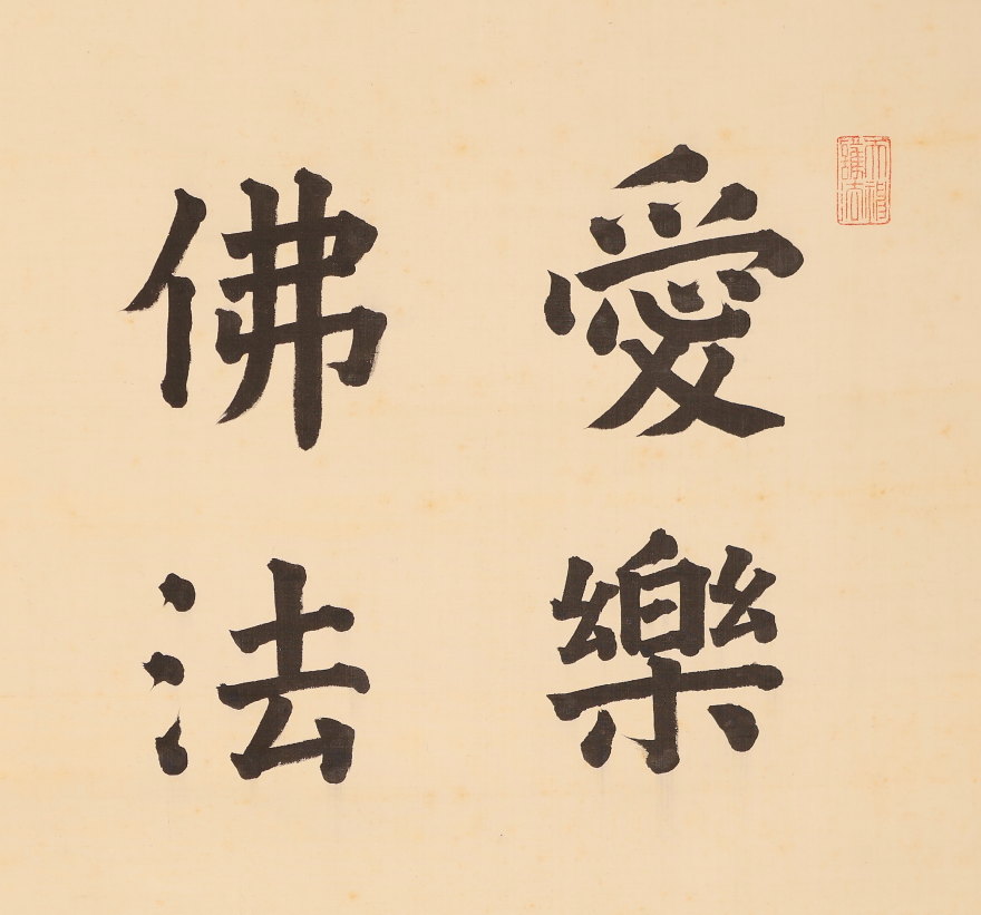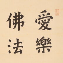 掛軸<木辺孝慈>超大幅 書「愛楽佛法味」清水六兵衛の軸先 竹屋町表具(HP1597)