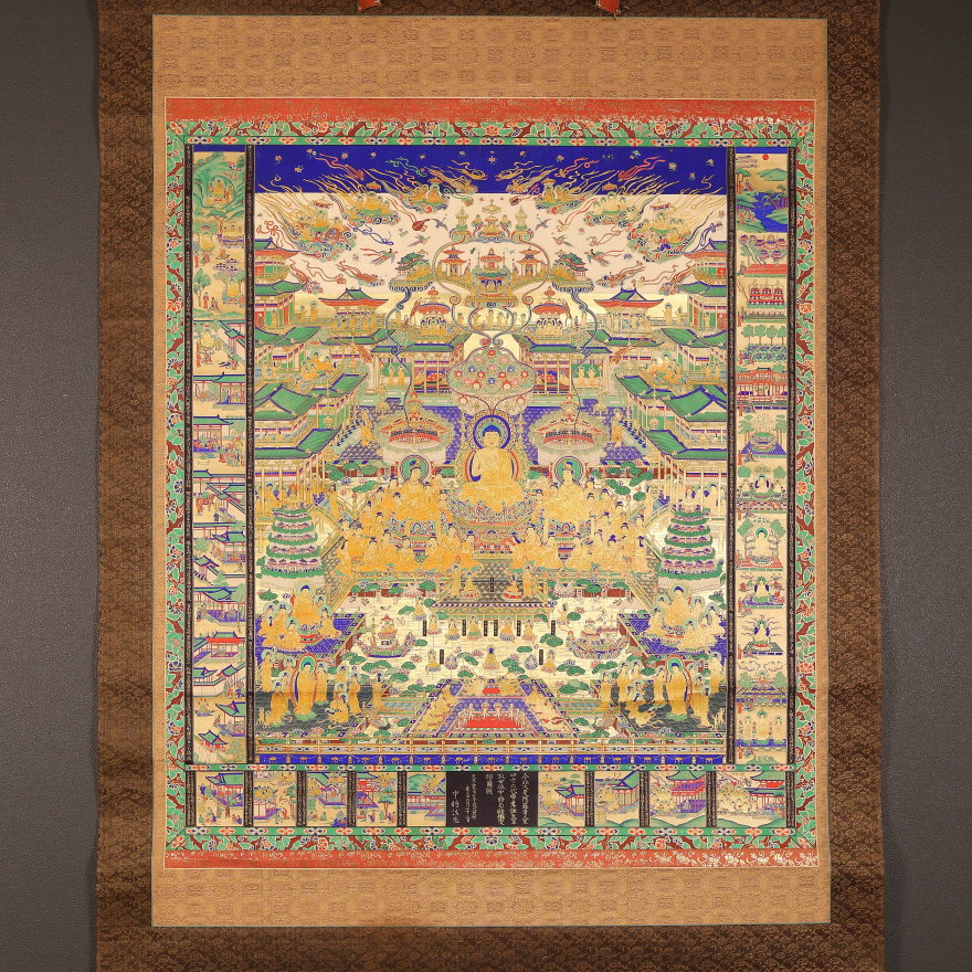 掛軸 超大幅 仏画 当麻曼荼羅 木版彩色 中国(HP1598)