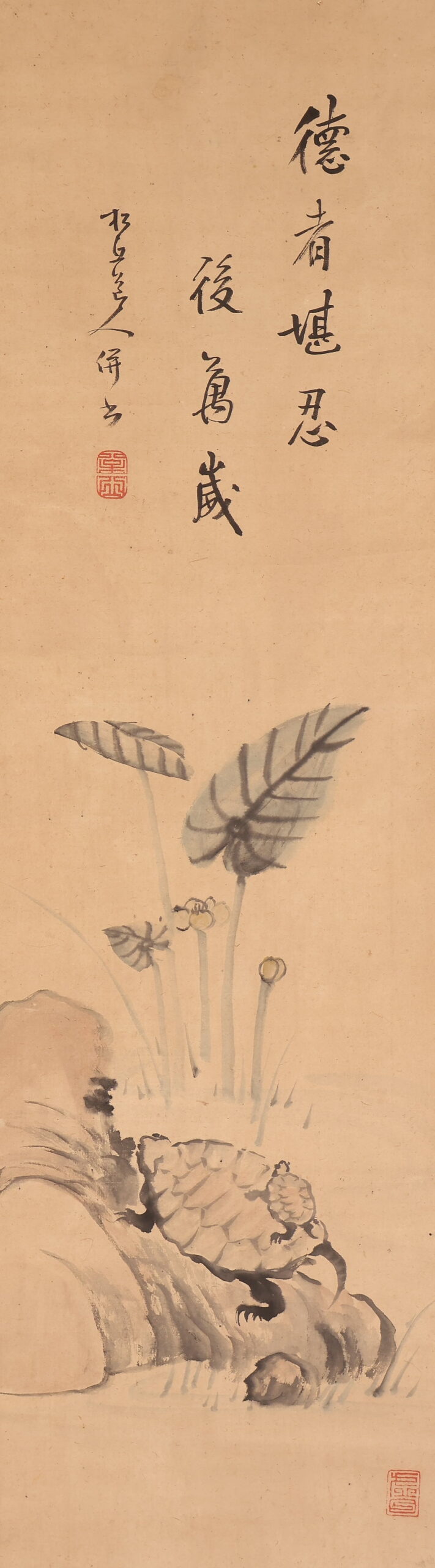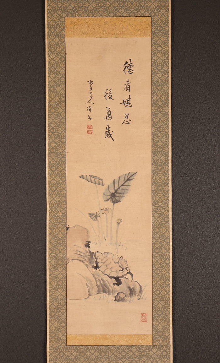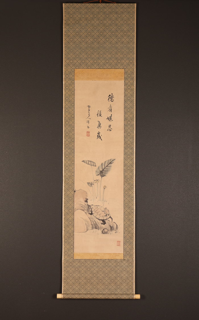 掛軸<松丘>亀画賛(HP1609)