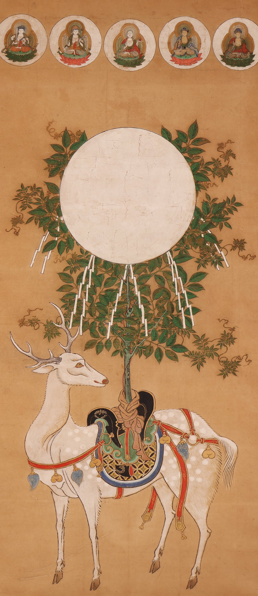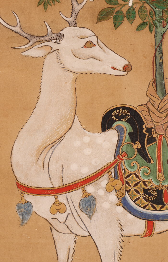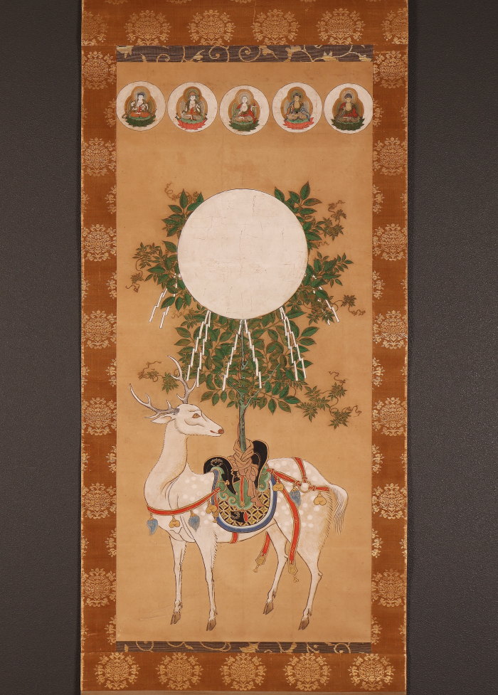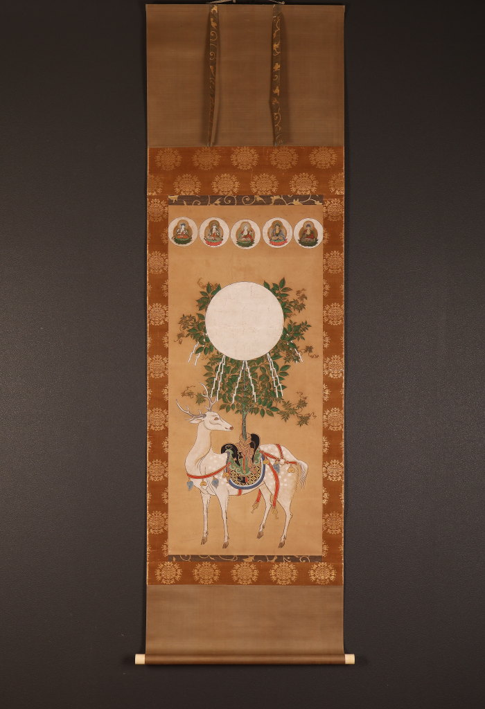 掛軸 仏画 春日曼荼羅 鹿曼荼羅 無落款 中国 江戸時代前期-中期(HP1610)