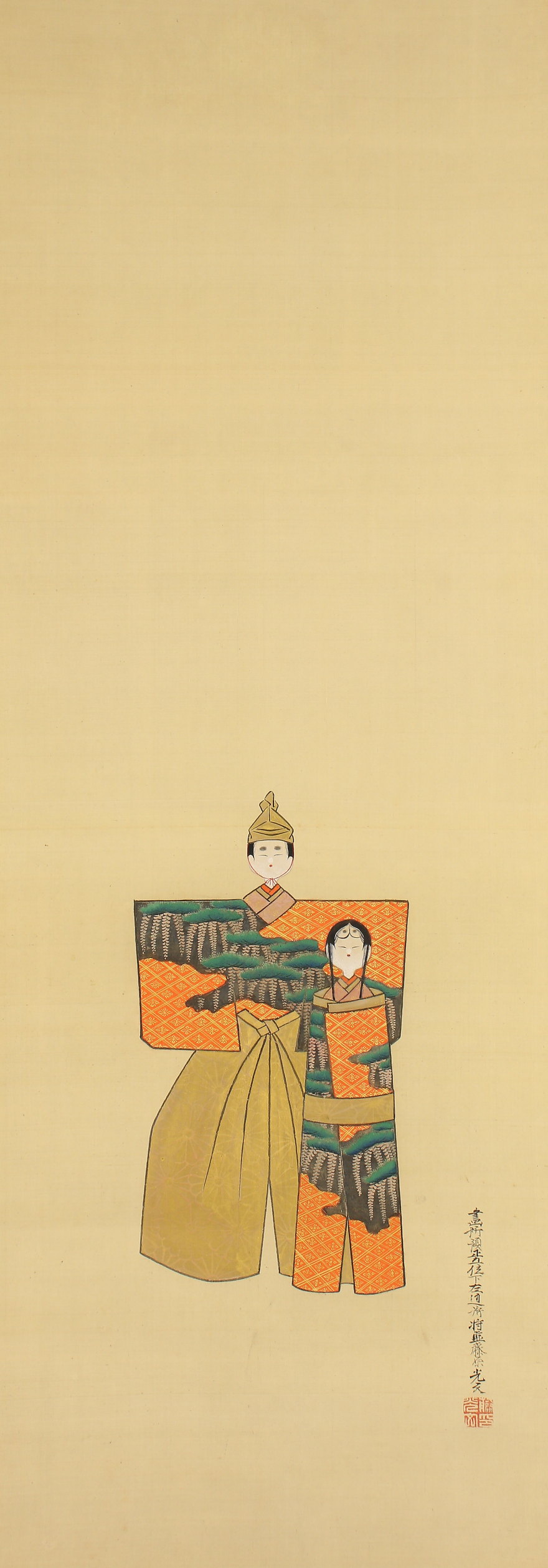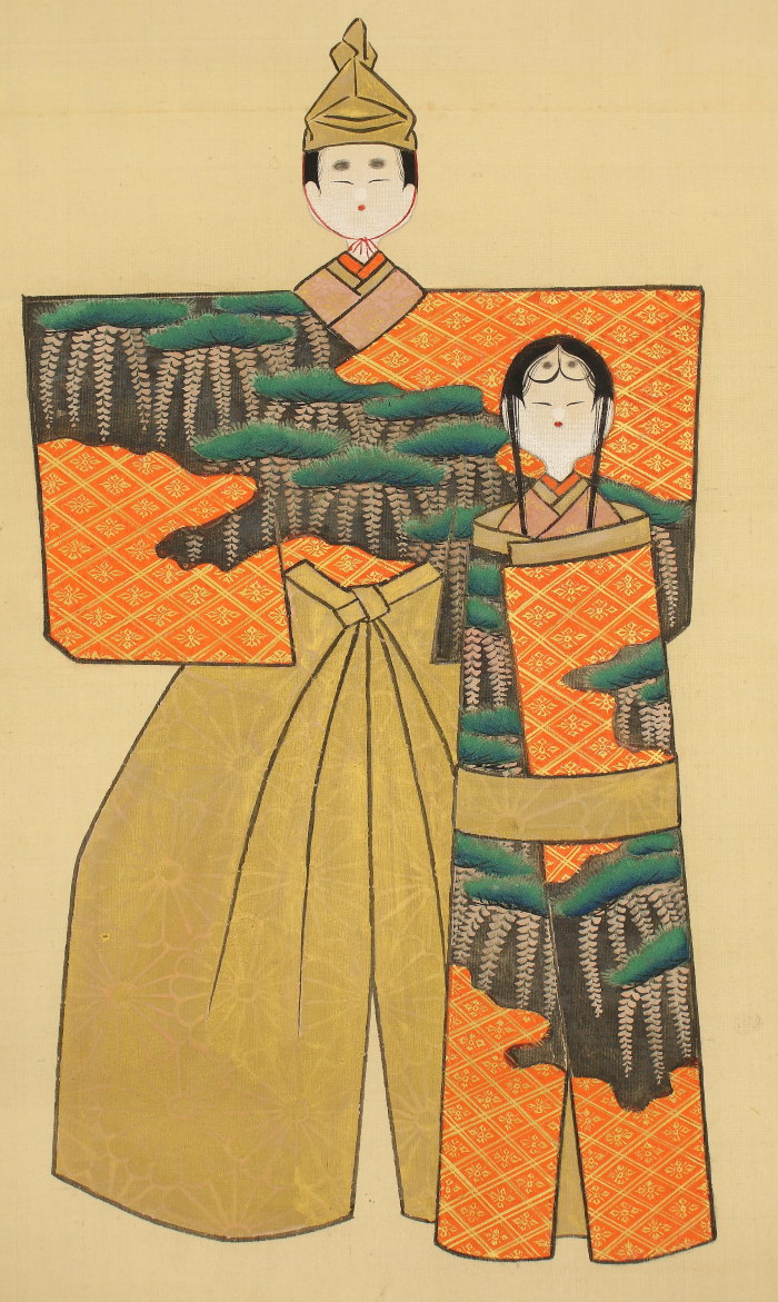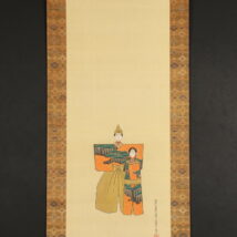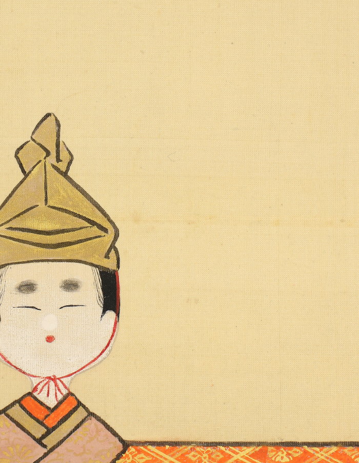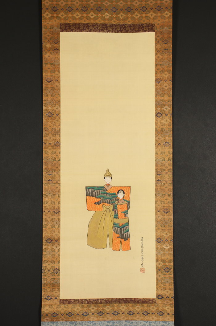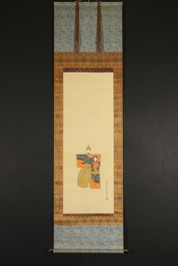 掛軸<土佐光文>立雛図 軸先に菊花・五七桐紋 三月掛 桃の節句 雛祭(HP555)