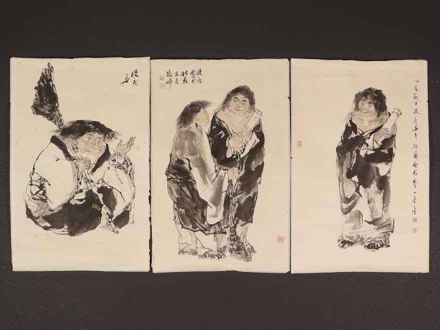【売約済】<張暁飛>寒山拾得図 3枚組 マクリ(HP722)