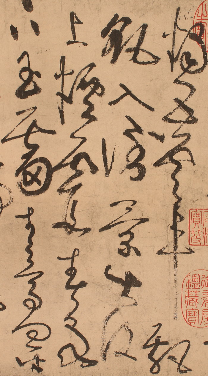 張旭(生没年不詳)は中国・唐代中期の書家。字は伯高。呉郡(現在の江蘇省蘇州市)出身。官は左率府(警備にあたる官庁)の長史(総務部長)になったことから張長史とも呼ばれた。草書を極めるとともに、従来規範とされて来た王羲之と王献之、いわゆる「二王」の書風に真正面から異を唱え、書道界に改革の旋風を巻き起こすきっかけとなった。詳しい経歴は不詳であるが、地元(現在の常熟市)で官位を得たあと長安に上京、官吏として勤めながら顔真卿・杜甫・賀知章らと交わり書家として活動していた。大酒豪として知られ、杜甫の詩「飲中八仙歌」の中でいわゆる「飲中八仙」の一人に挙げられているほどである。