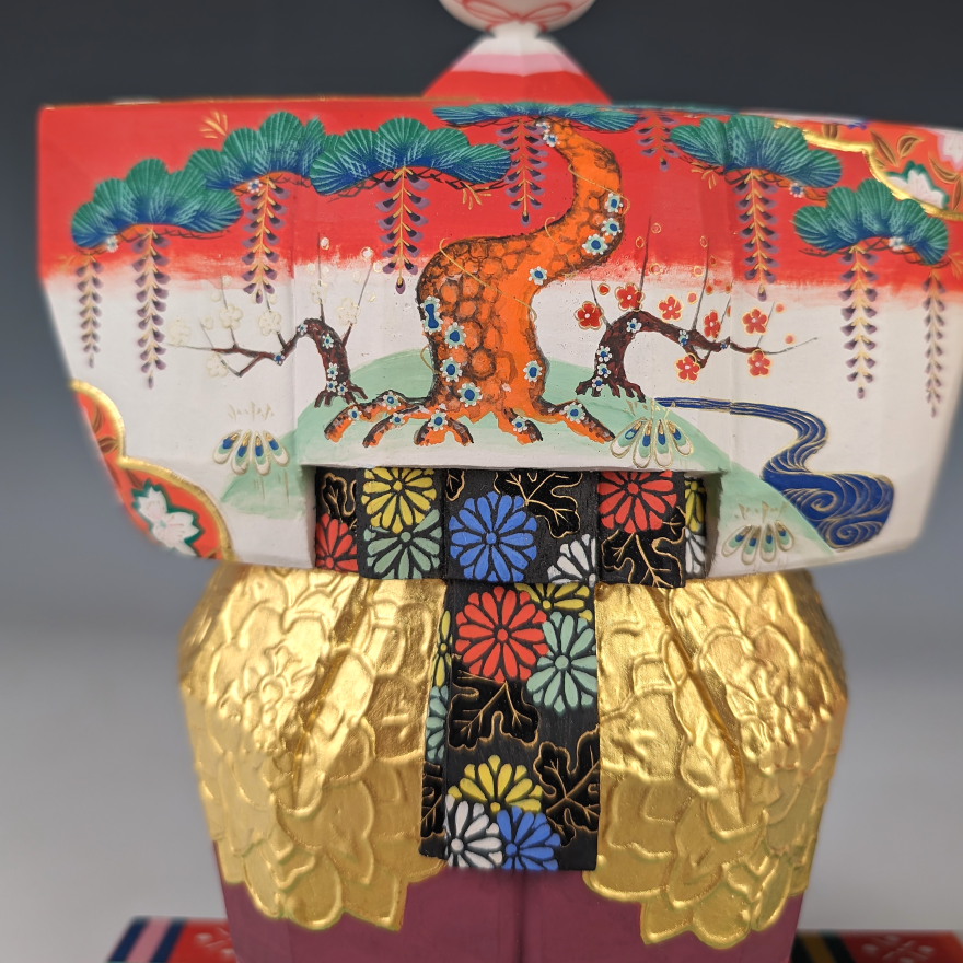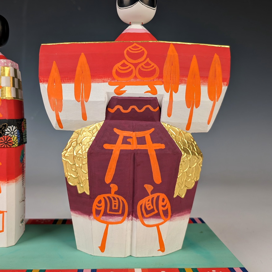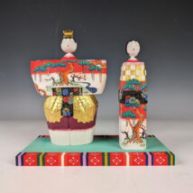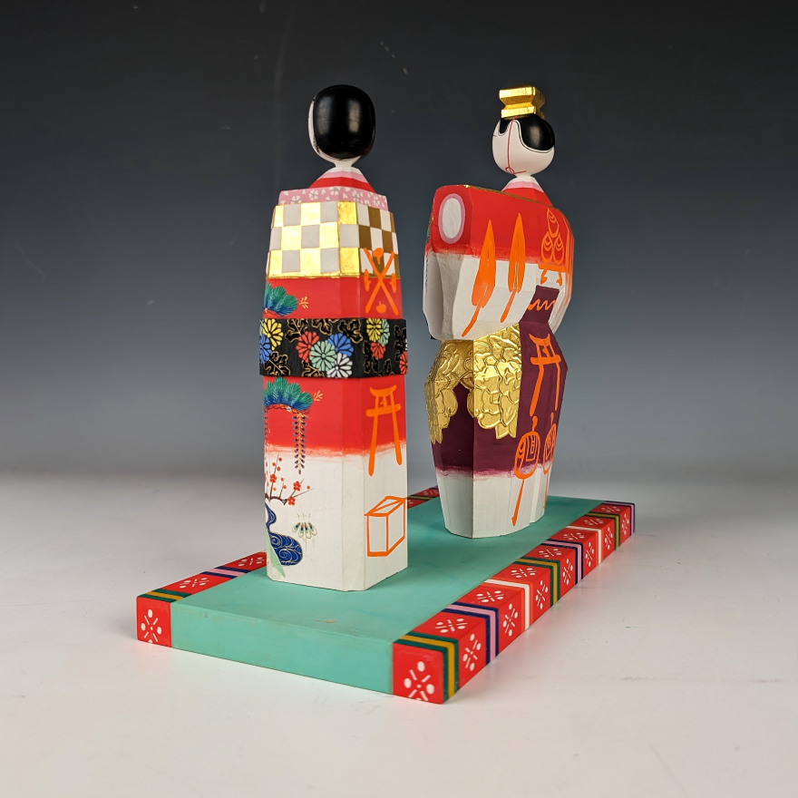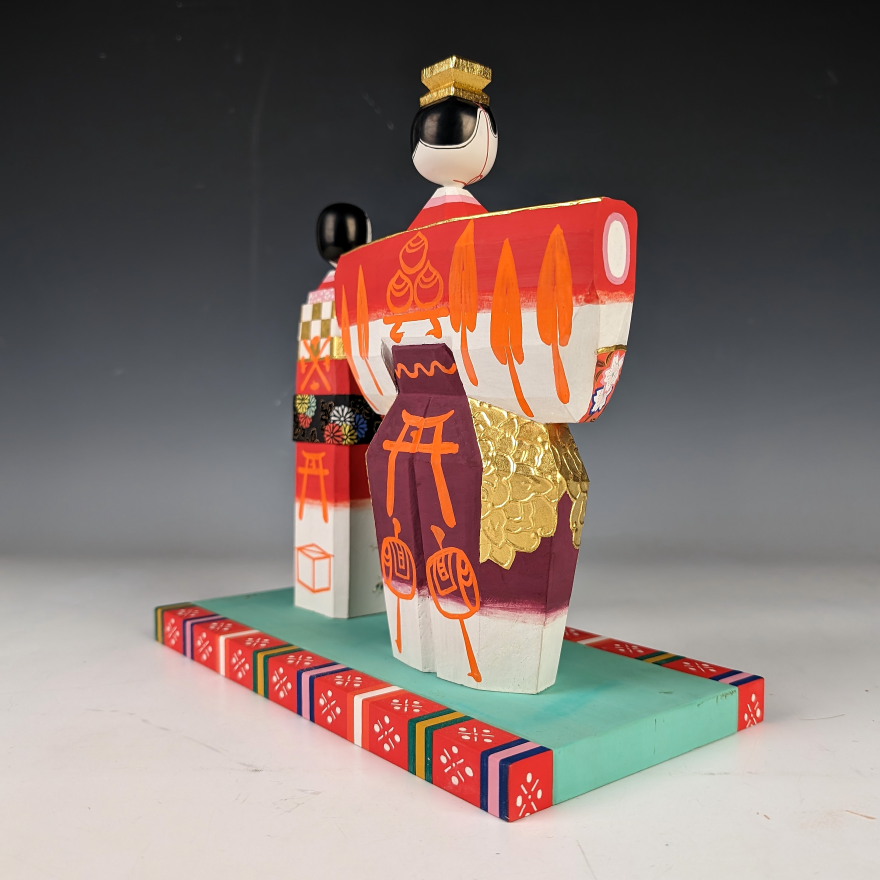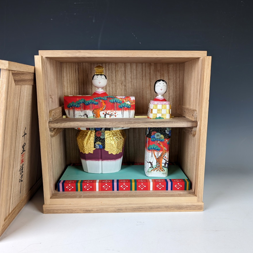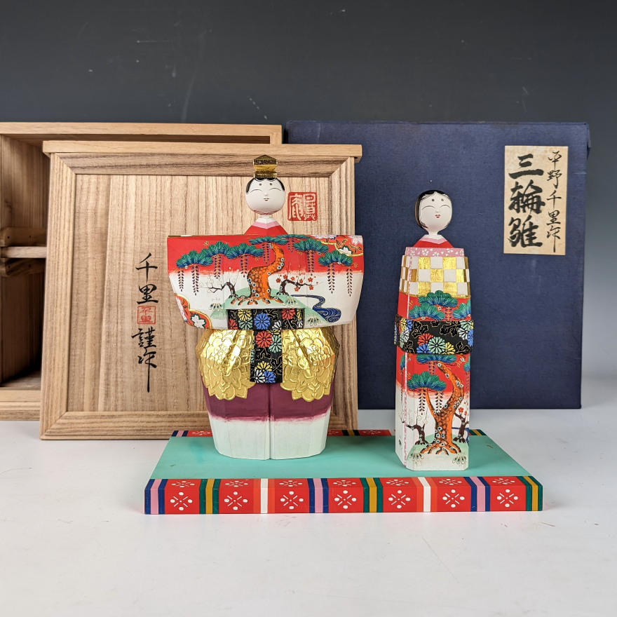 【売約済】<平野千里>木彫極彩色 「三輪雛」(HP844)