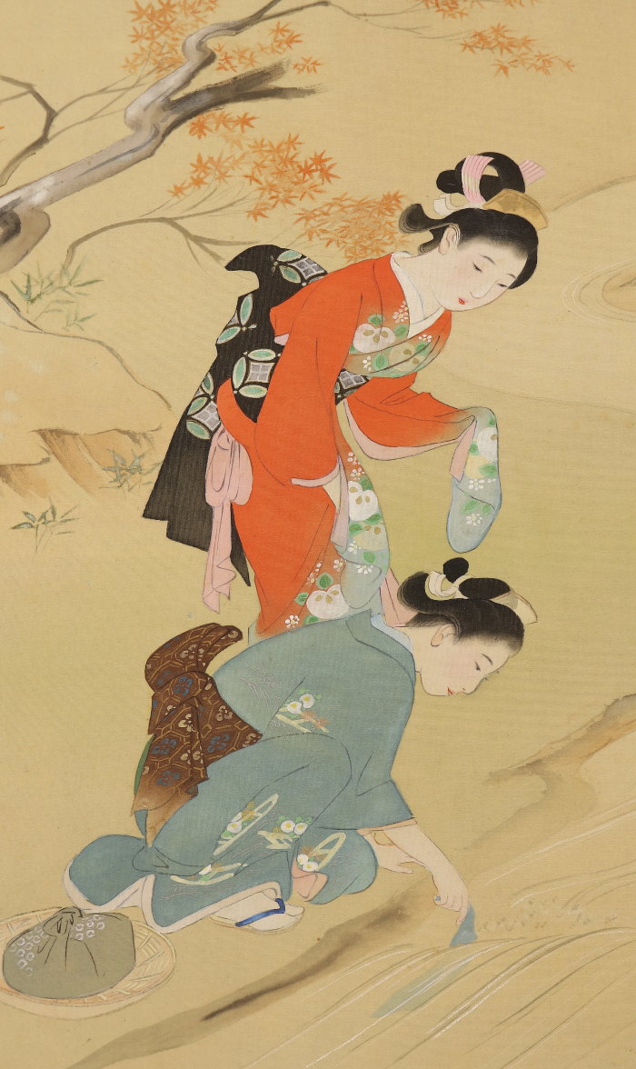 【売約済】掛軸<島御風>希品!秋景旅美人図(SU021)